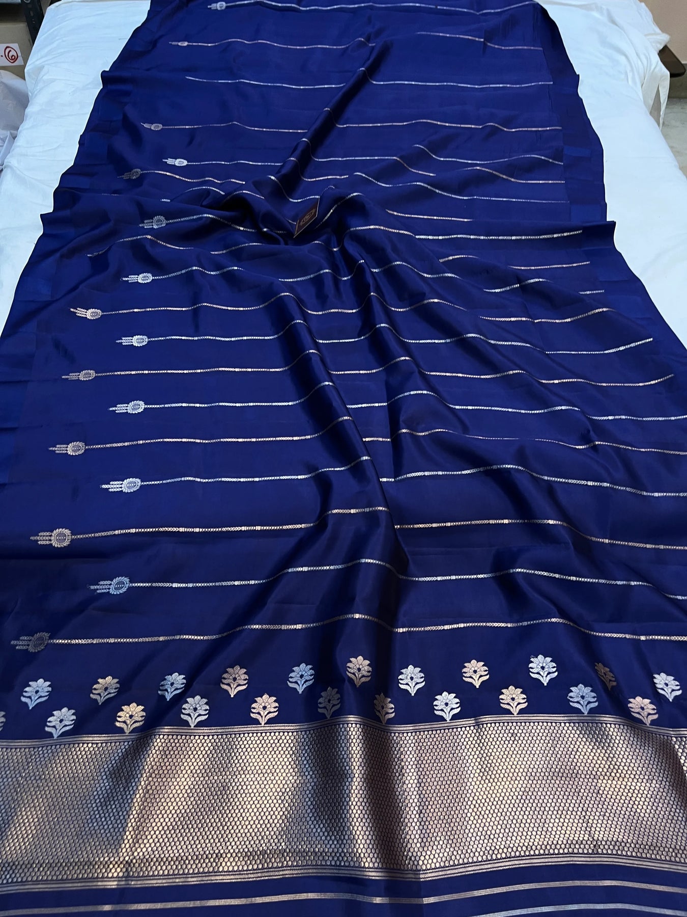 Navy Blue Pure Silk Handloom Banarasi Saree