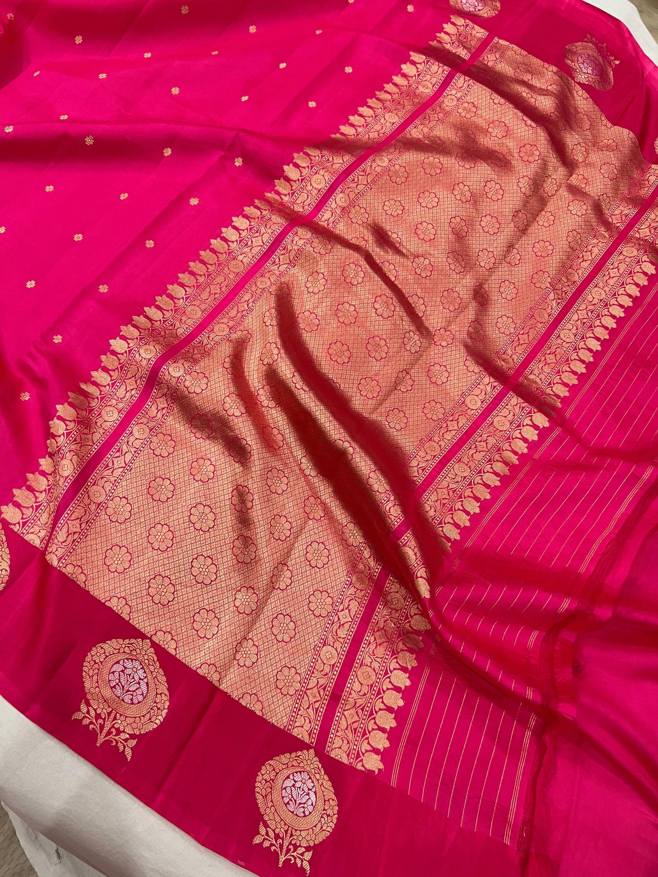Orangish Pink Pure Banarasi Handloom Silk Saree