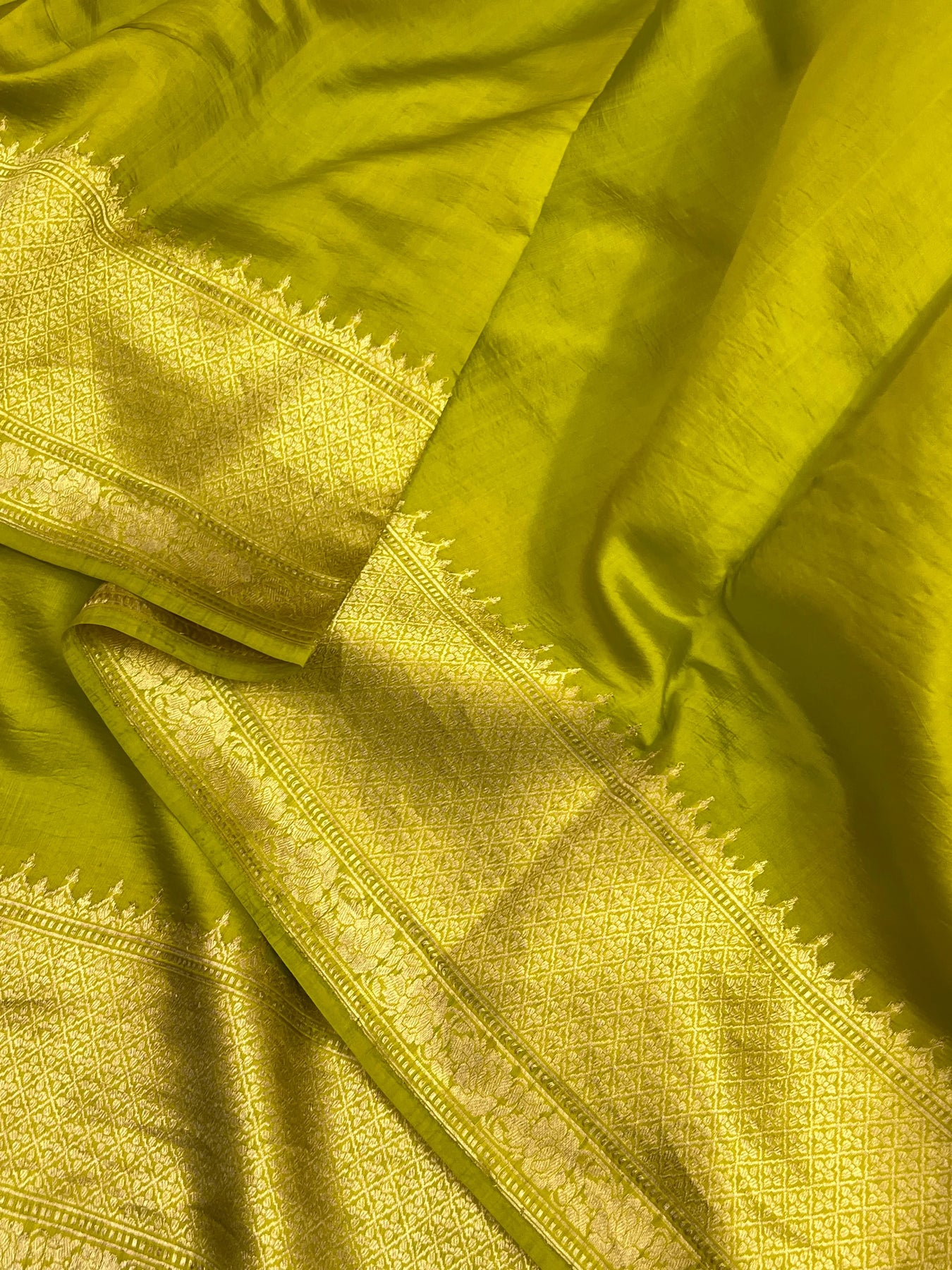 Parrot Green Pure Silk Handloom Banarasi Saree with Kadhwa motifs
