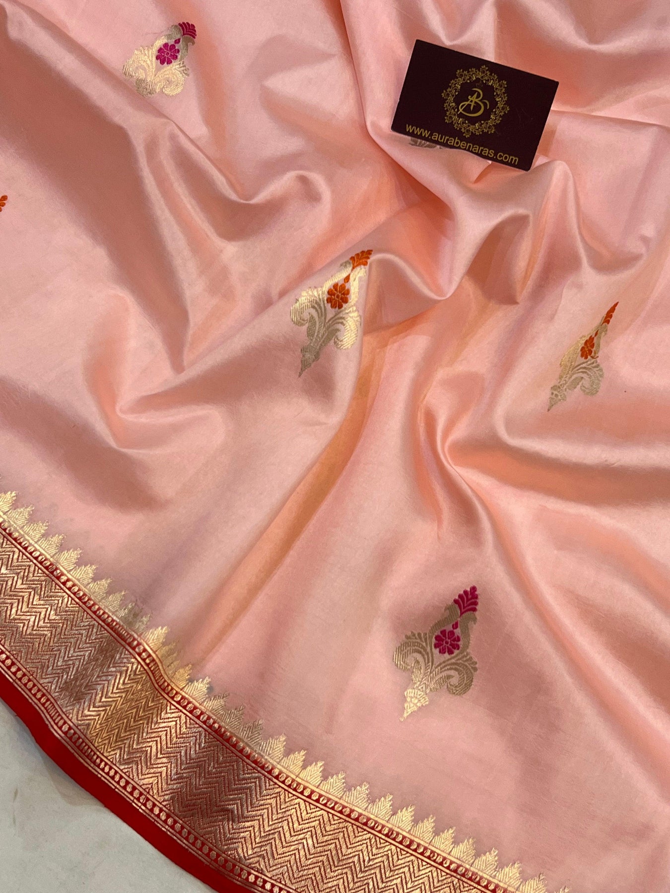 Peach Pure Banarasi Handloom Silk Saree - Aura Benaras