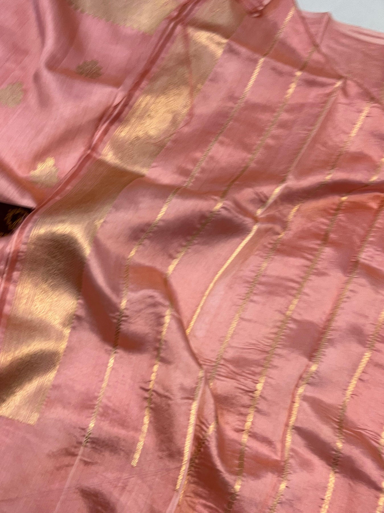 Peachish Pink Pure Banarasi Handloom Silk Saree