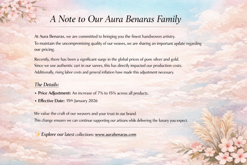 ✨ Each Aura Benaras piece is handwoven with care — we ensure it reaches you safely, beautifully packed, and on time.