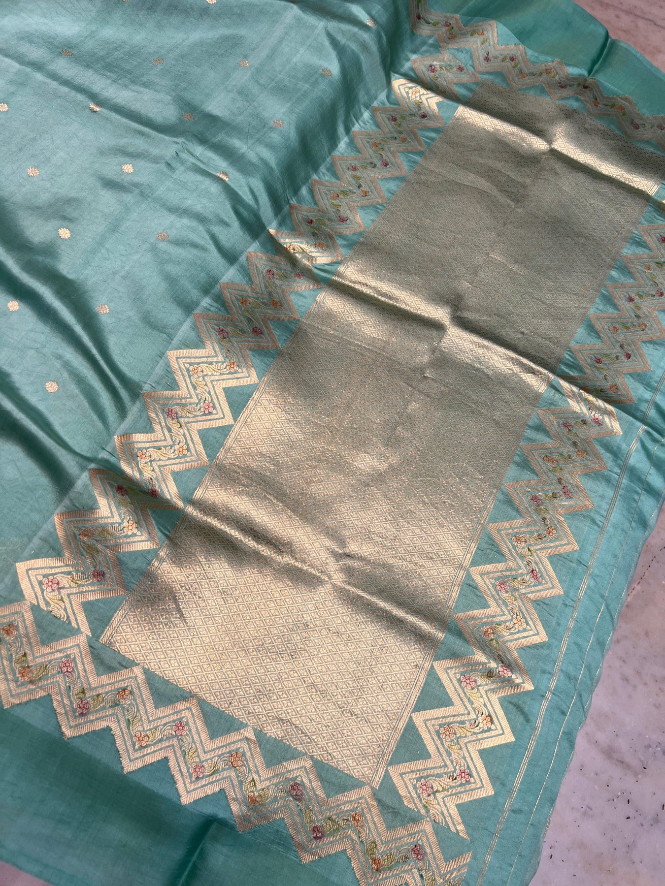 Sage Blue Pure Silk Handloom Banarasi Saree