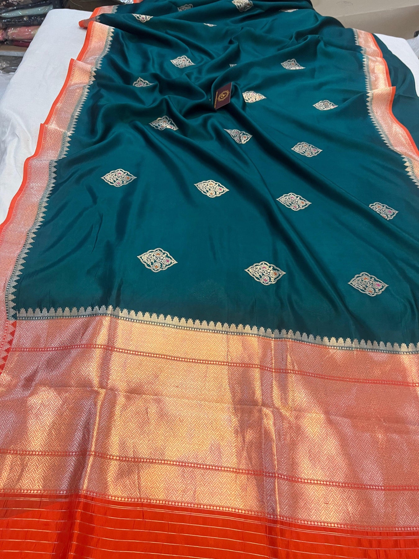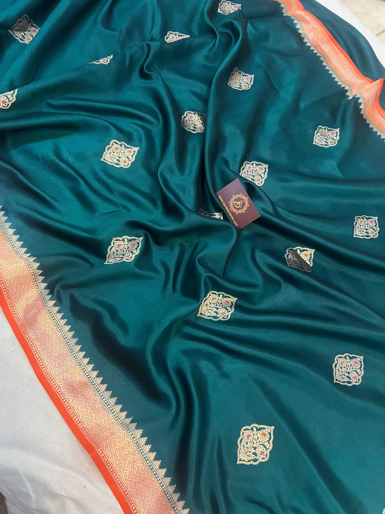 Teal Blue Pure Banarasi Handloom Silk Saree