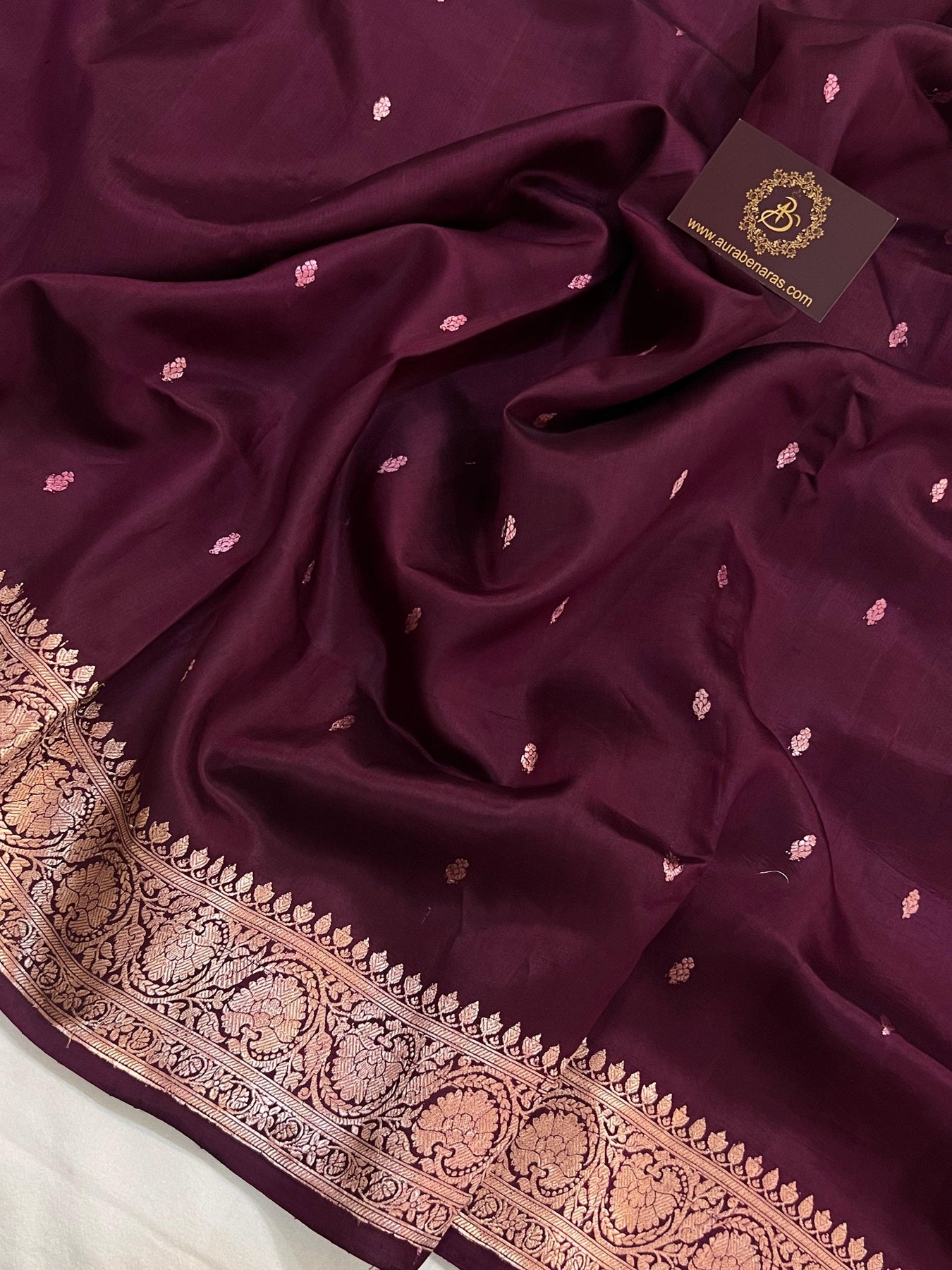 Wine Pure Banarasi Handloom Silk Saree - Aura Benaras