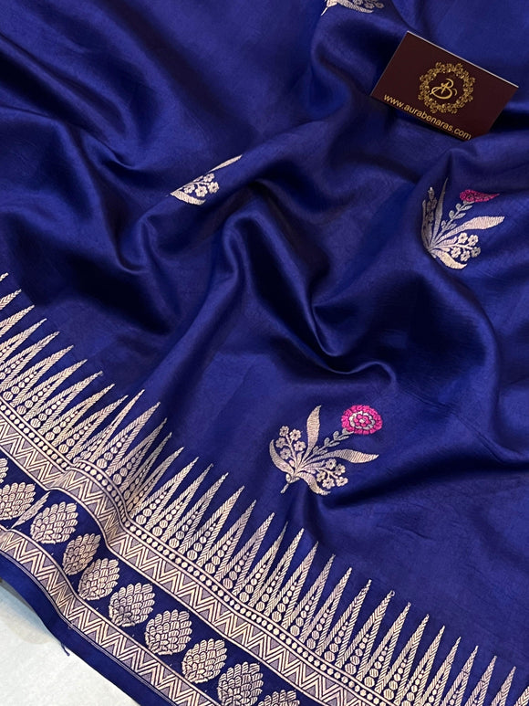 Navy Blue Pure Mashru Silk Handloom Banarasi Saree