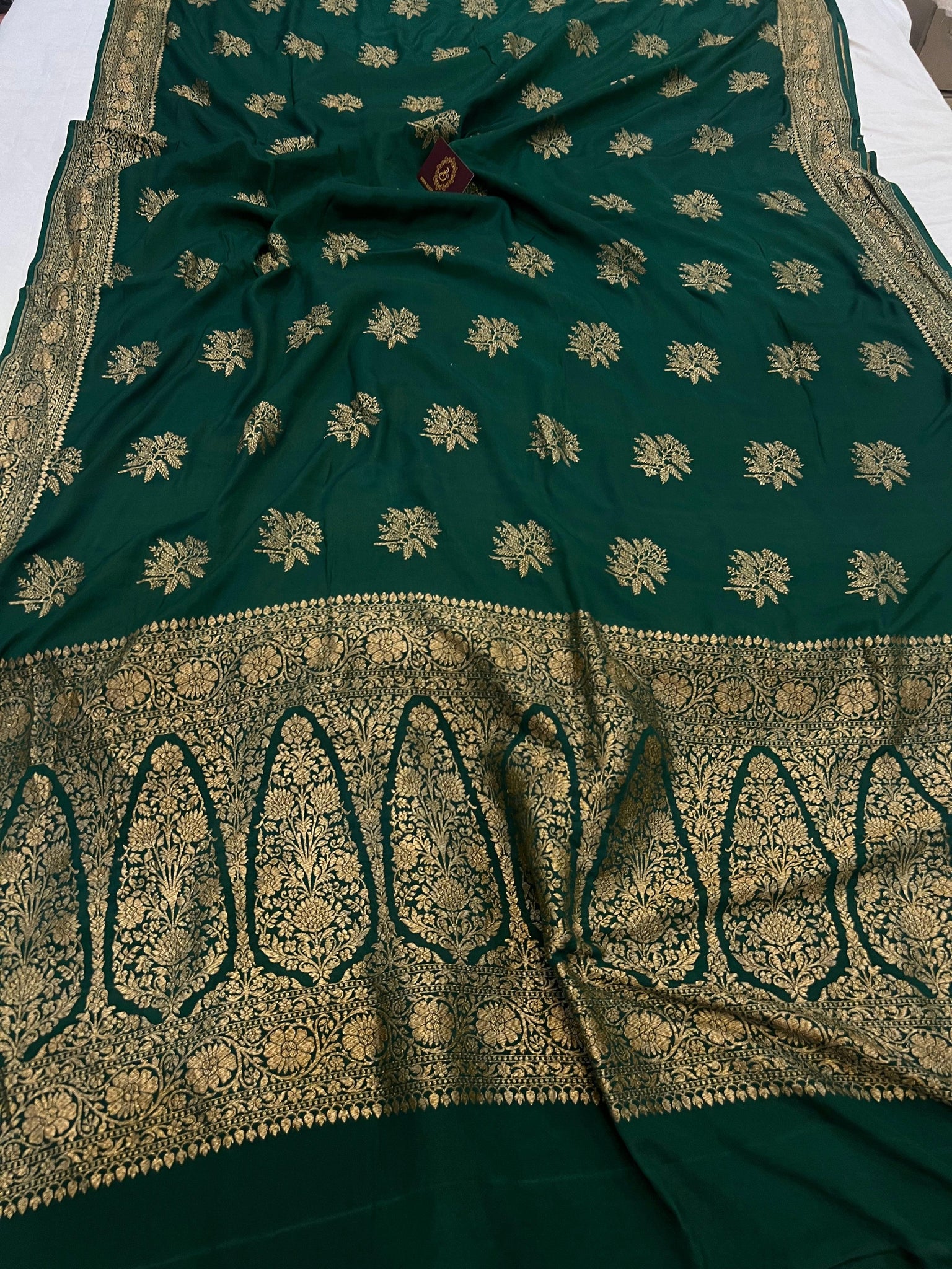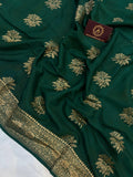 Bottle Green Pure Banarasi Khaddi Crepe Silk Saree