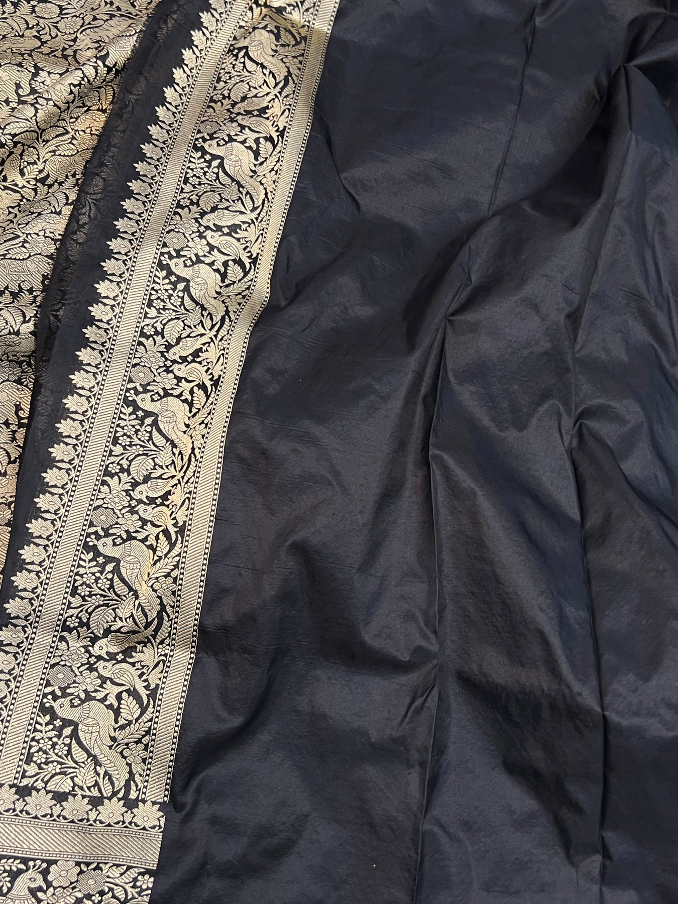 • Color - An enchanting Black with scintillating palla and border.
