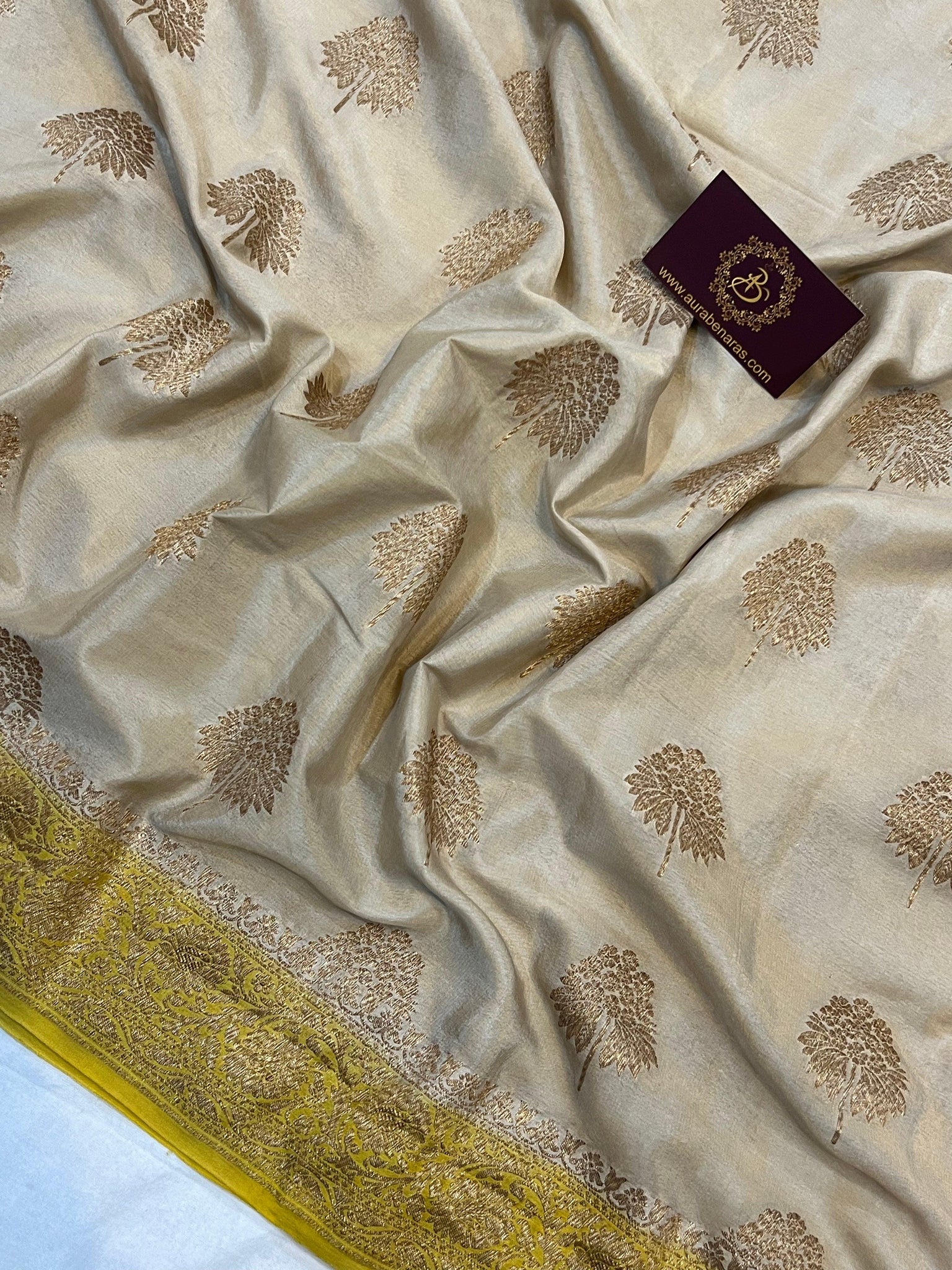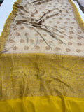 Beige Pure Banarasi Khaddi Crepe Silk Saree
