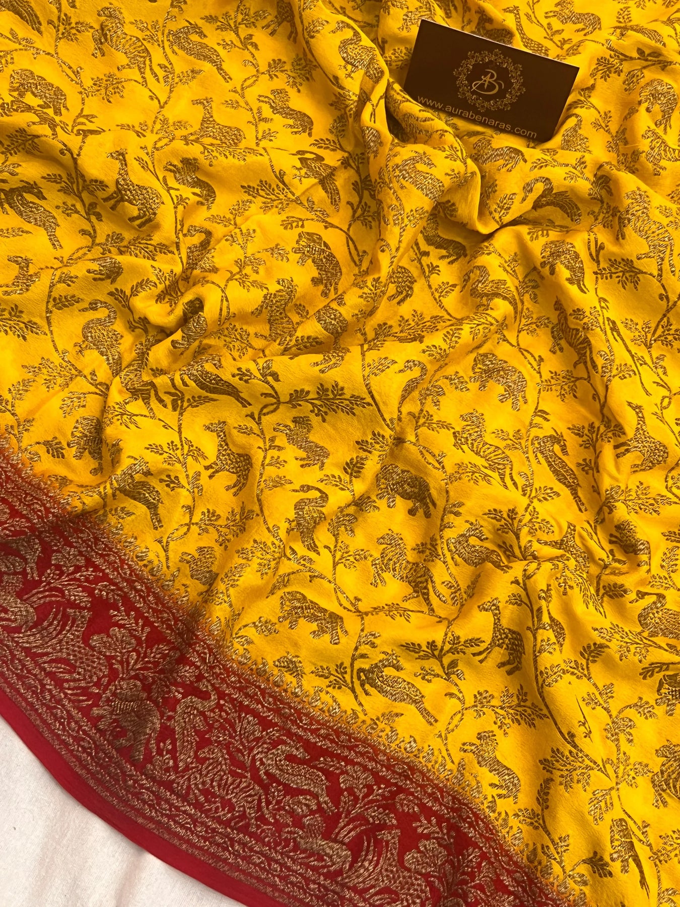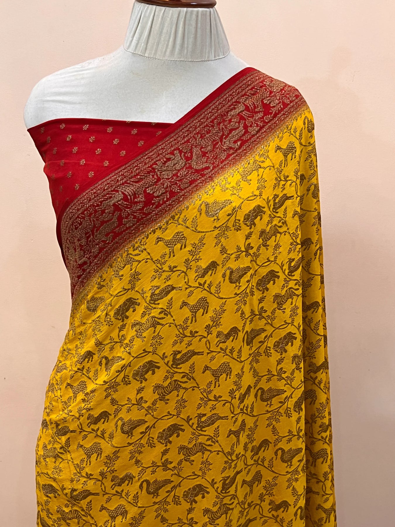 Yellow Pure Crepe Silk Handloom Banarasi Saree