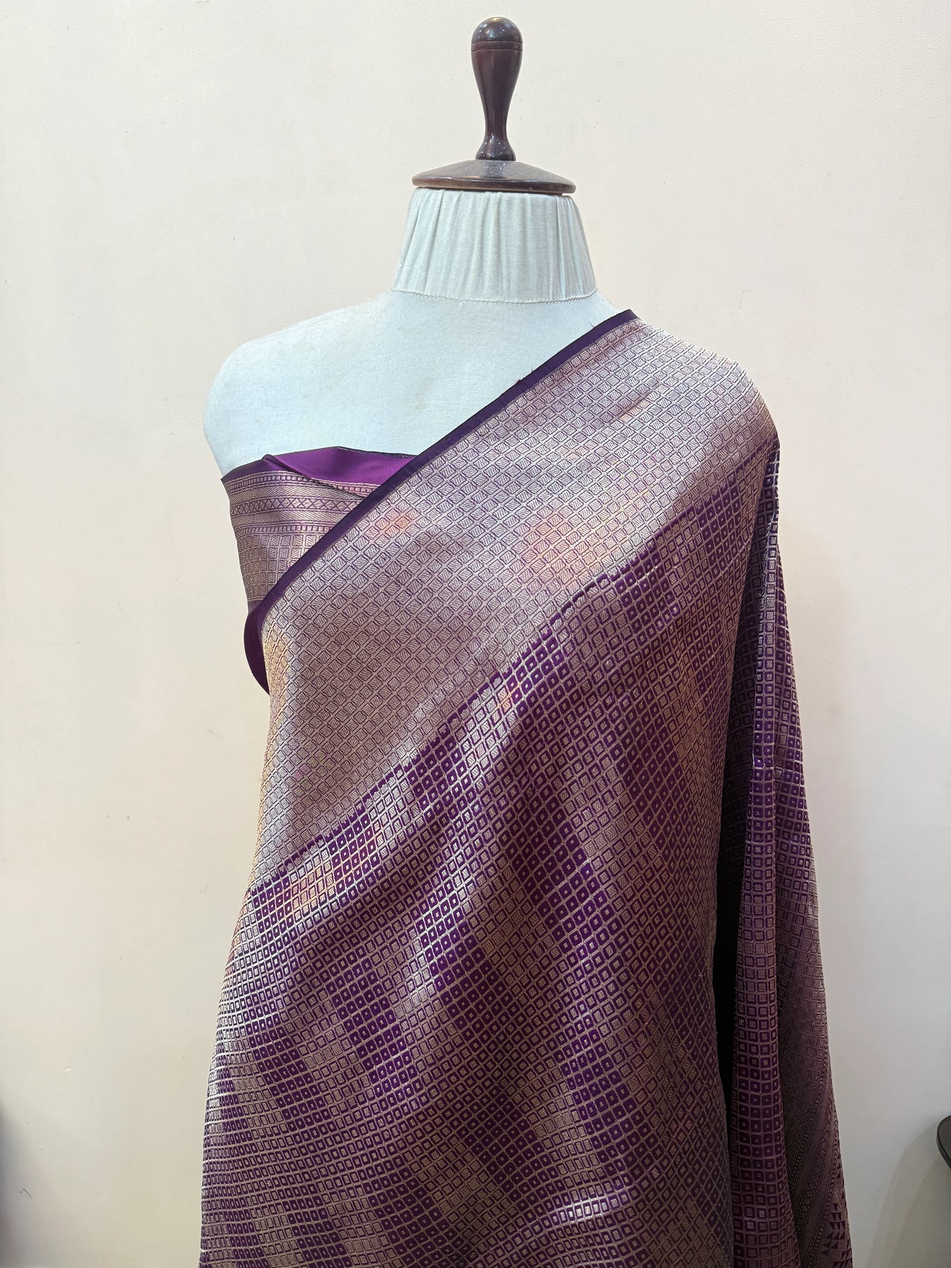 Deep Purple Pure Katan silk Handloom Banarasi Saree