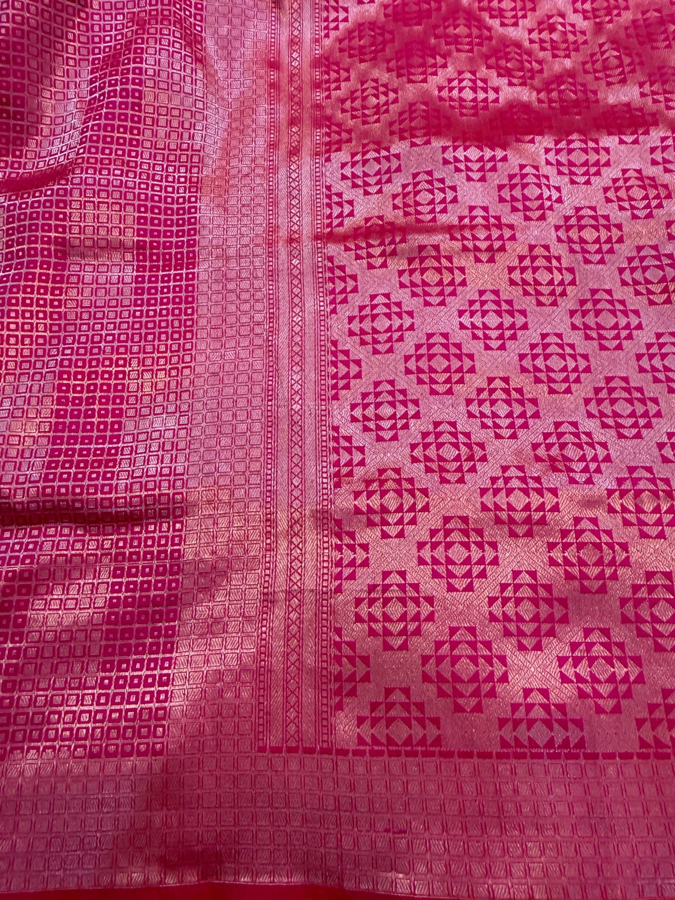 Rani Pink Pure Katan silk Handloom Banarasi Saree