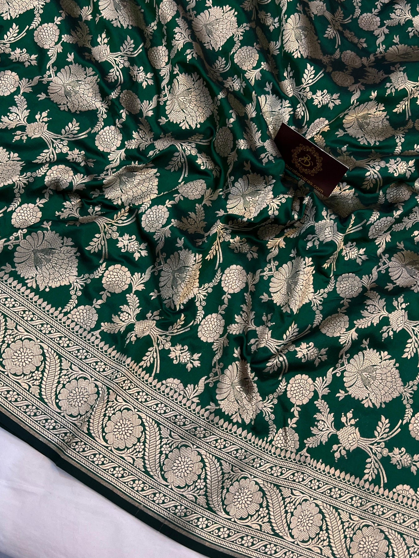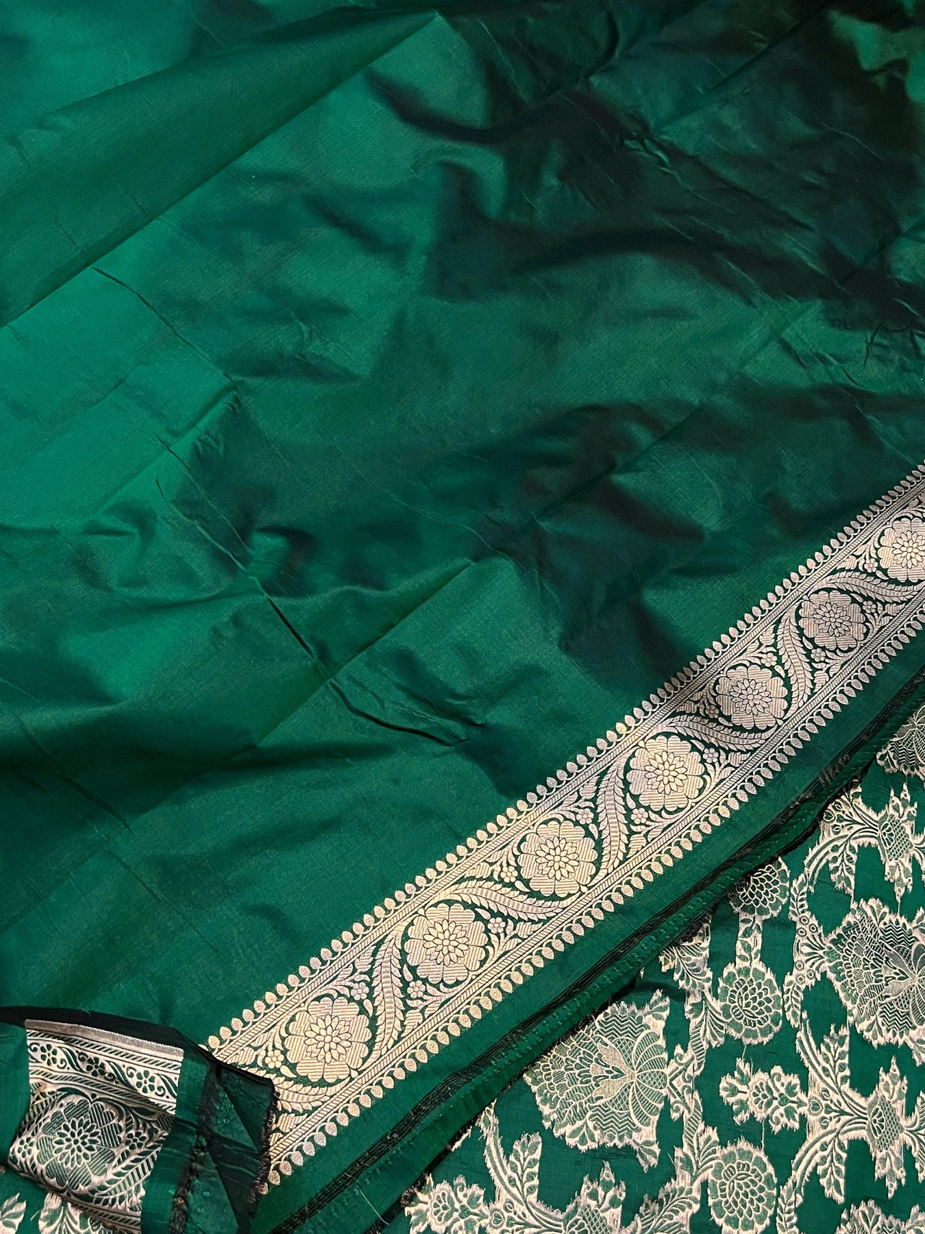 Bottle Green Pure Banarasi Handloom Katan Silk Saree