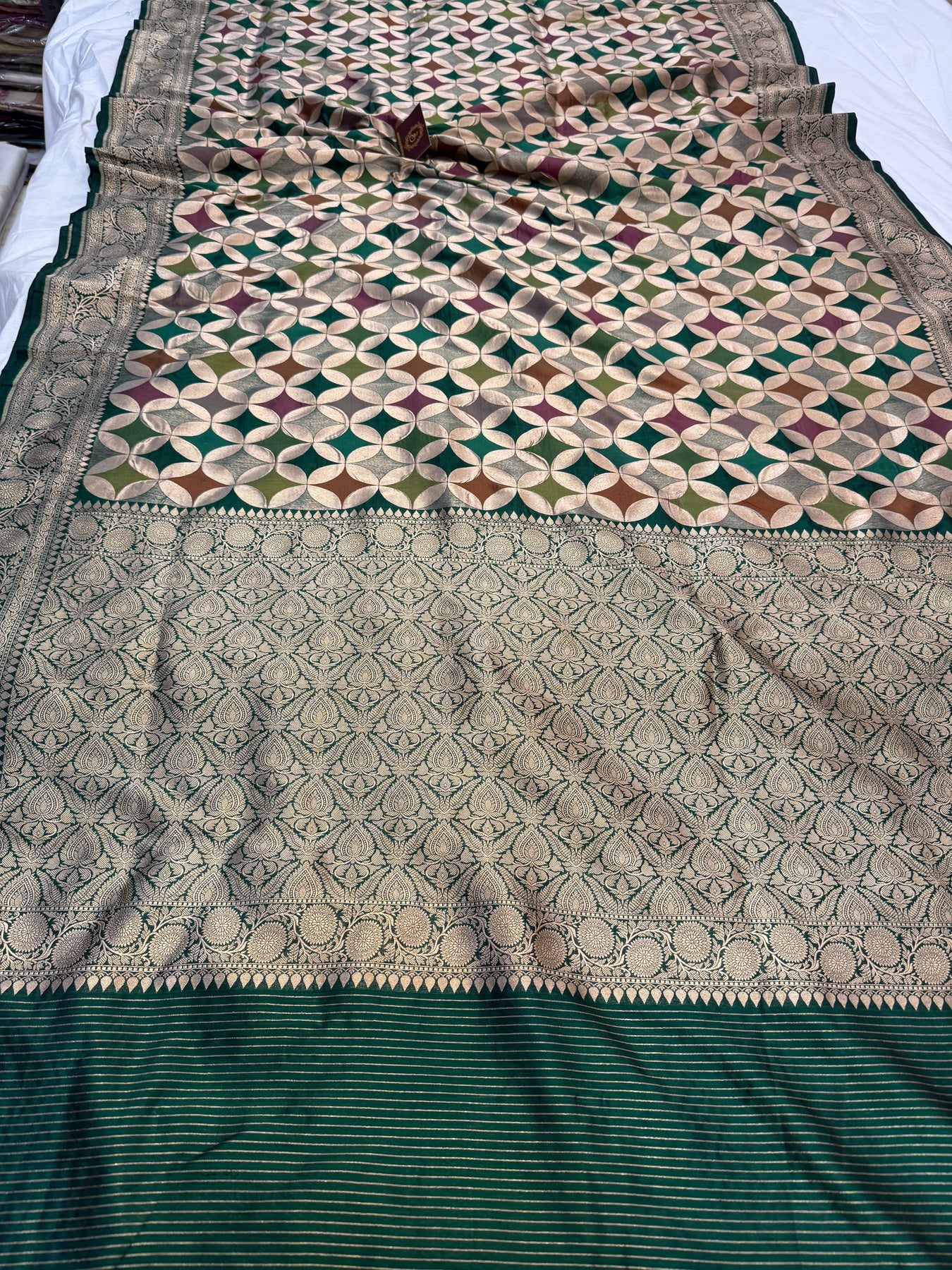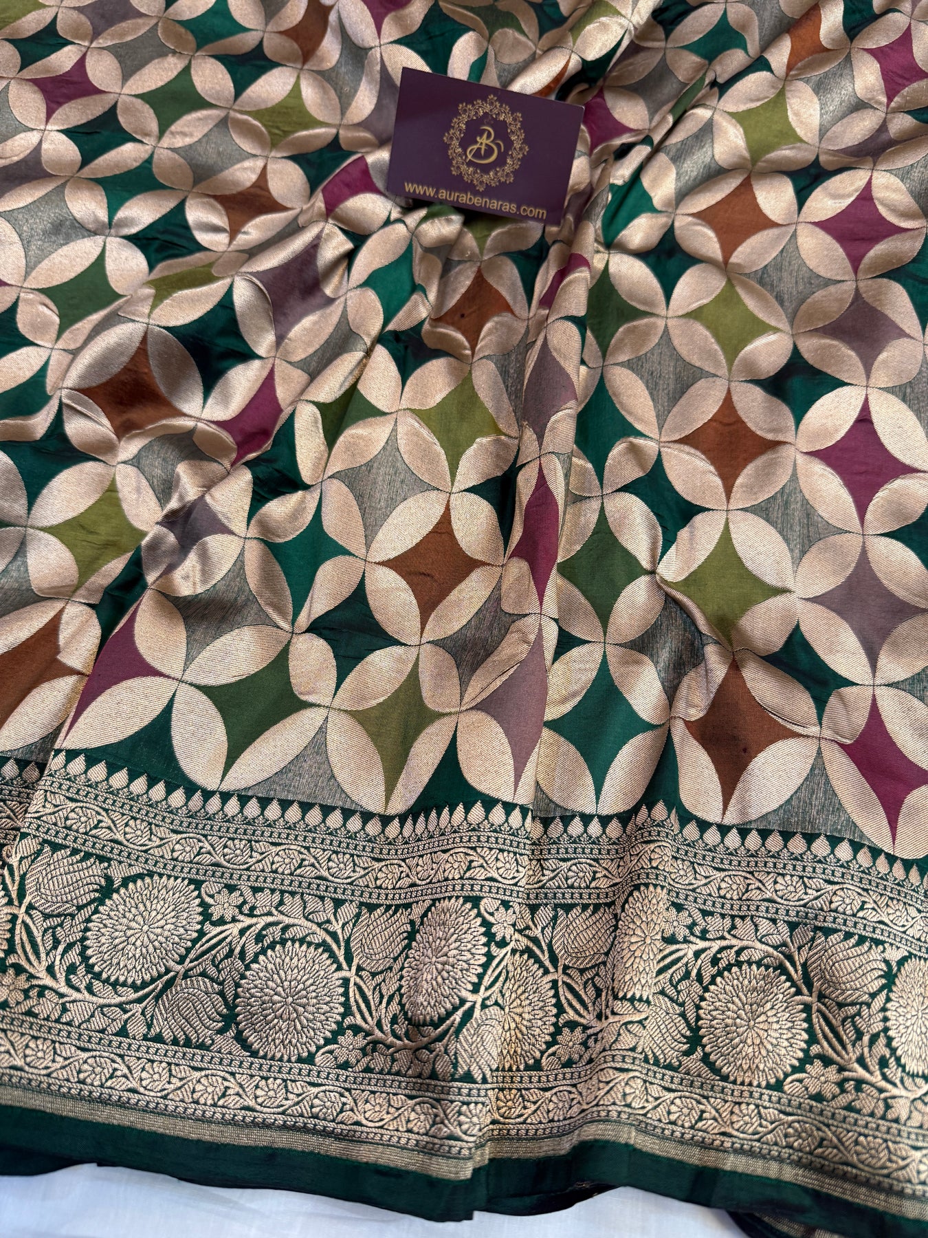 Bottle Green Rangkaat Pure Katan Silk Banarasi Handloom Saree