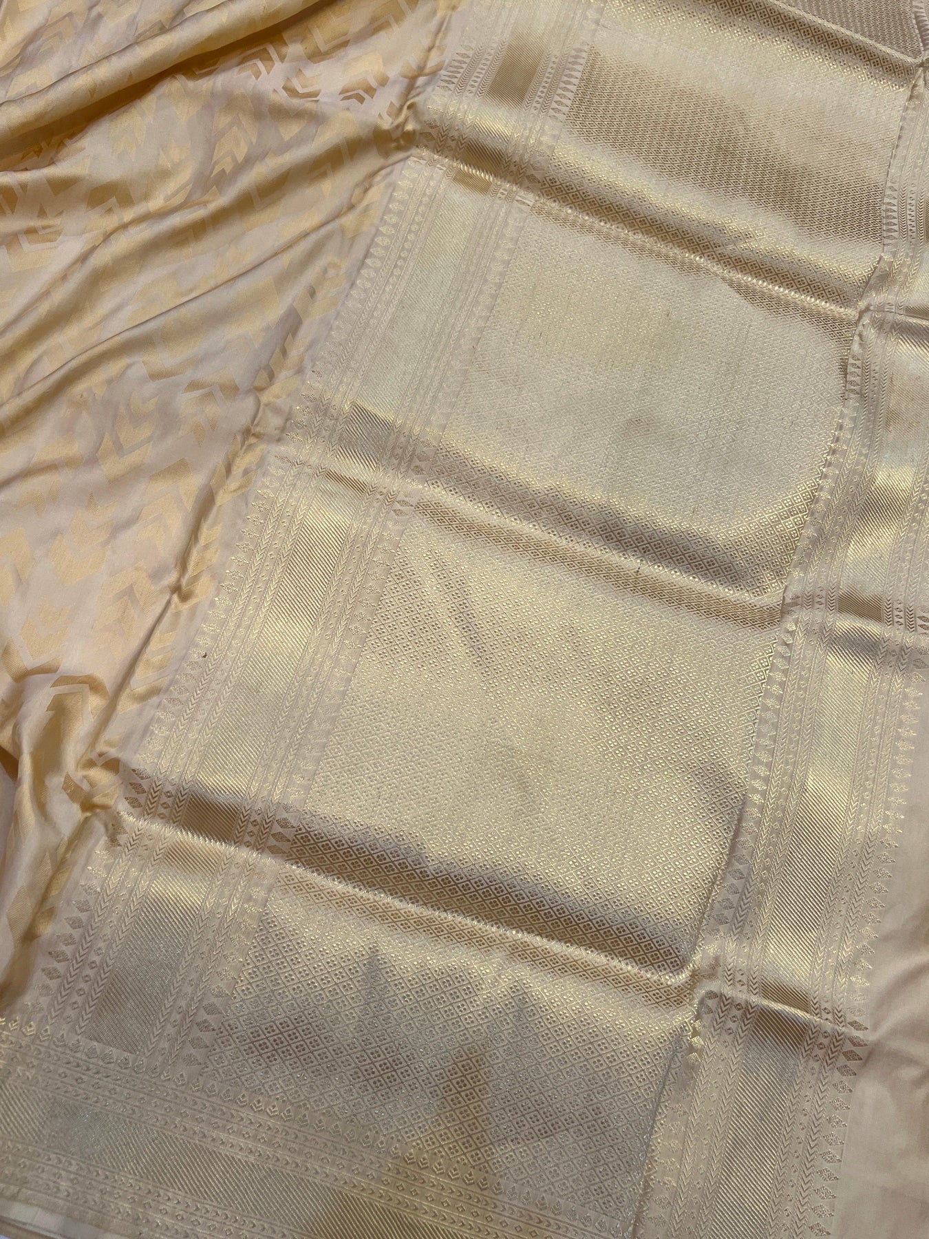 - Color - Cream Banarasi saree.