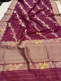 Matte Magenta Pure Katan Silk Banarasi Handloom Kadwa Jangla Saree