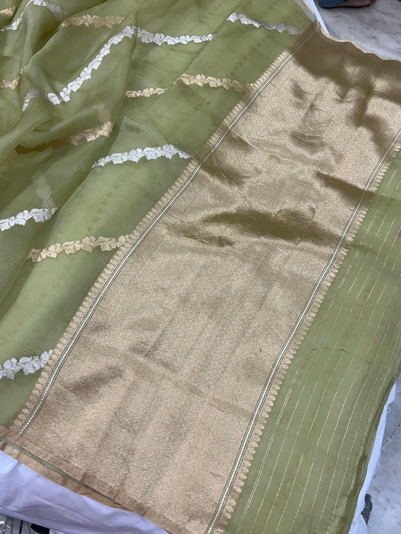 Mehendi Green Banarasi Handloom Kora Silk Saree