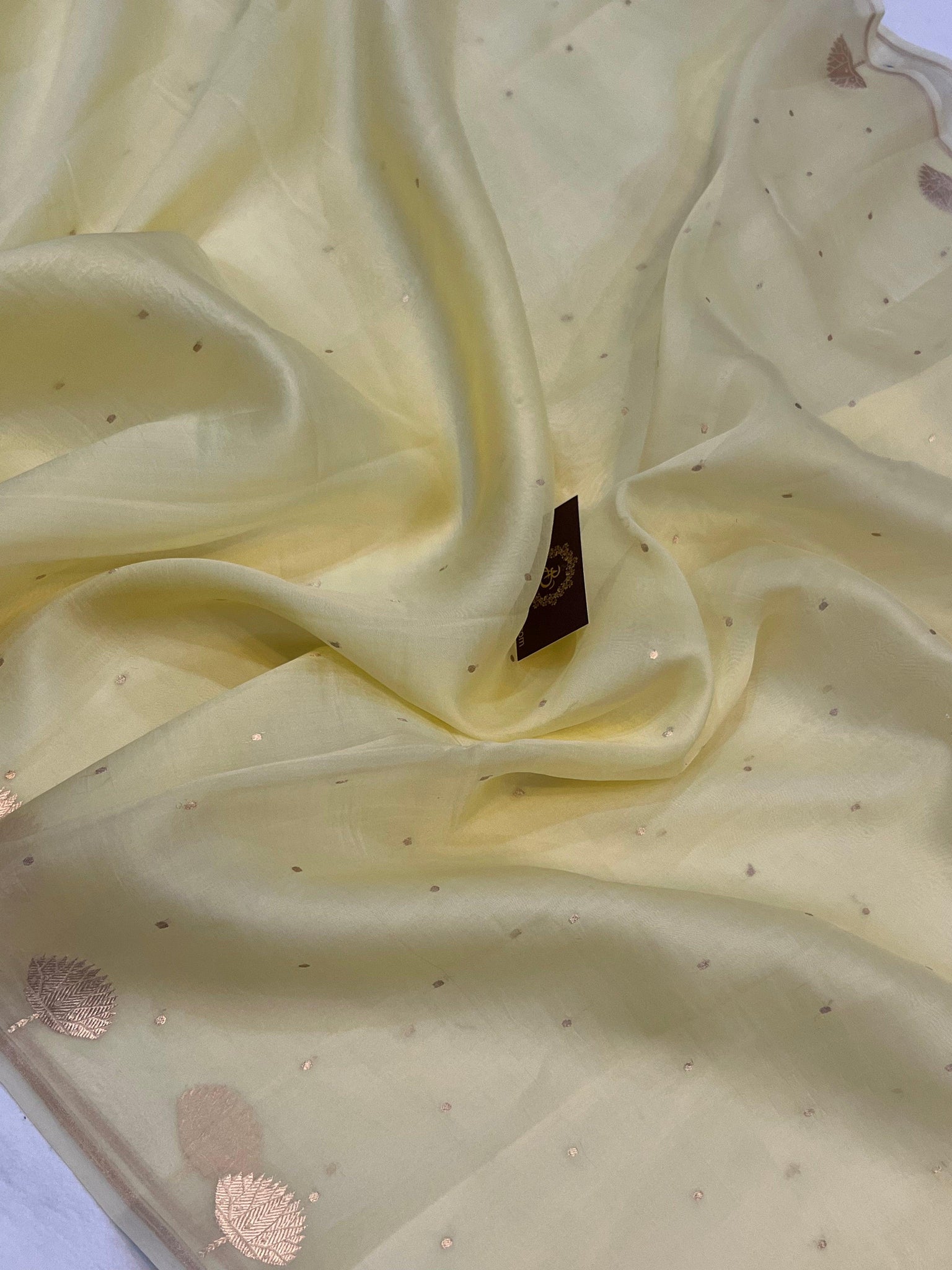 Pale Yellow Pure Banarasi Handloom Kora Silk Saree