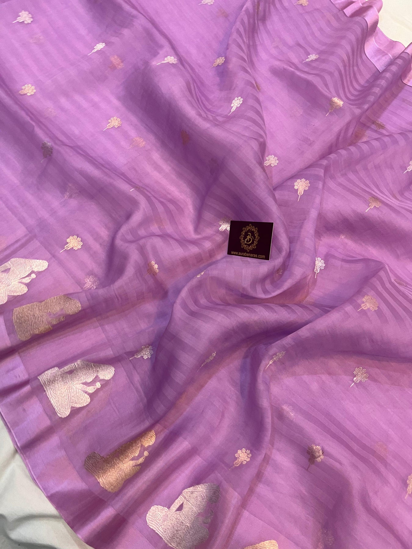 Lavender Pure Banarasi Handloom Kora Silk Saree