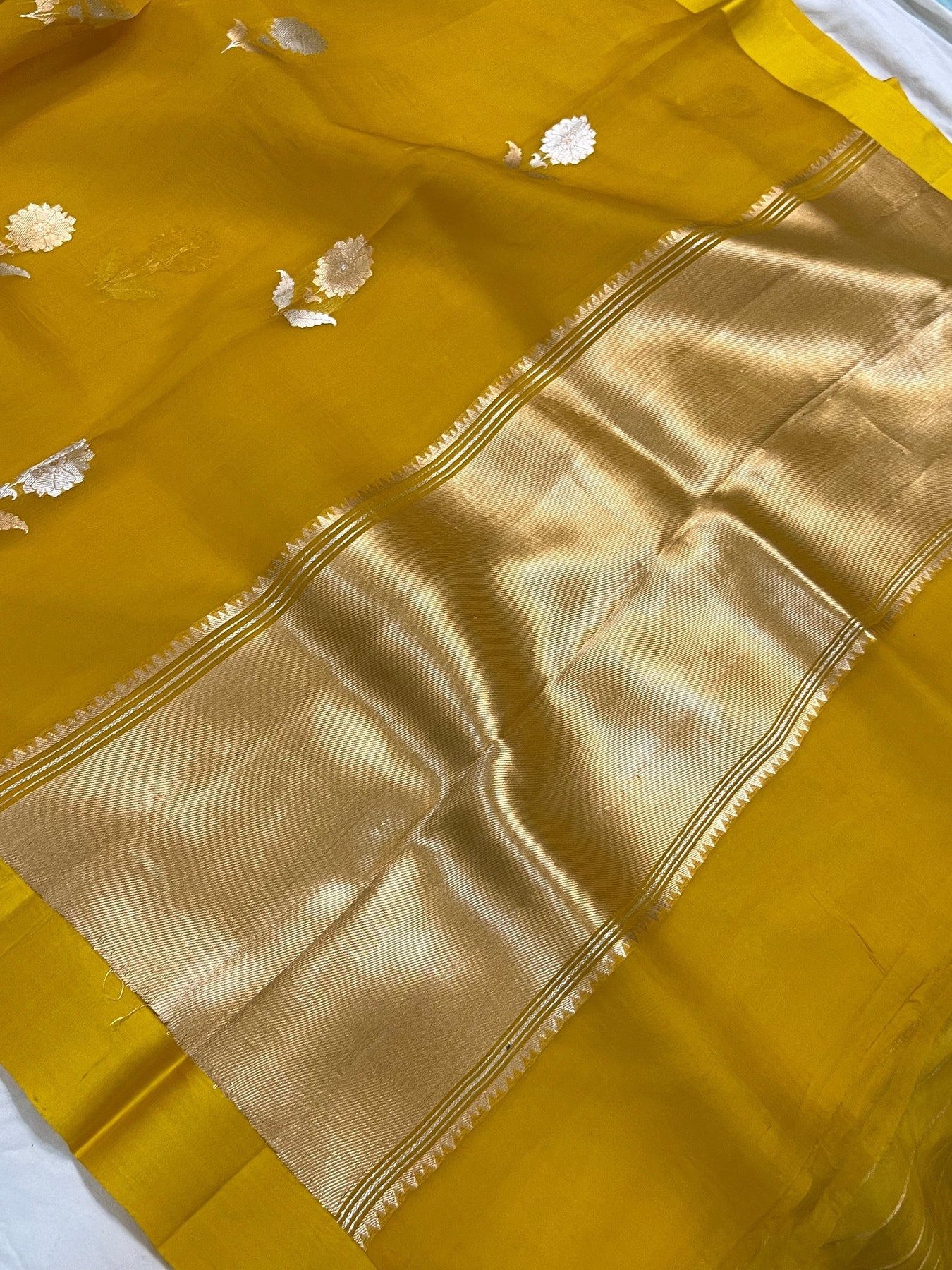 Mustard Yellow Banarasi Handloom Kora Silk Saree