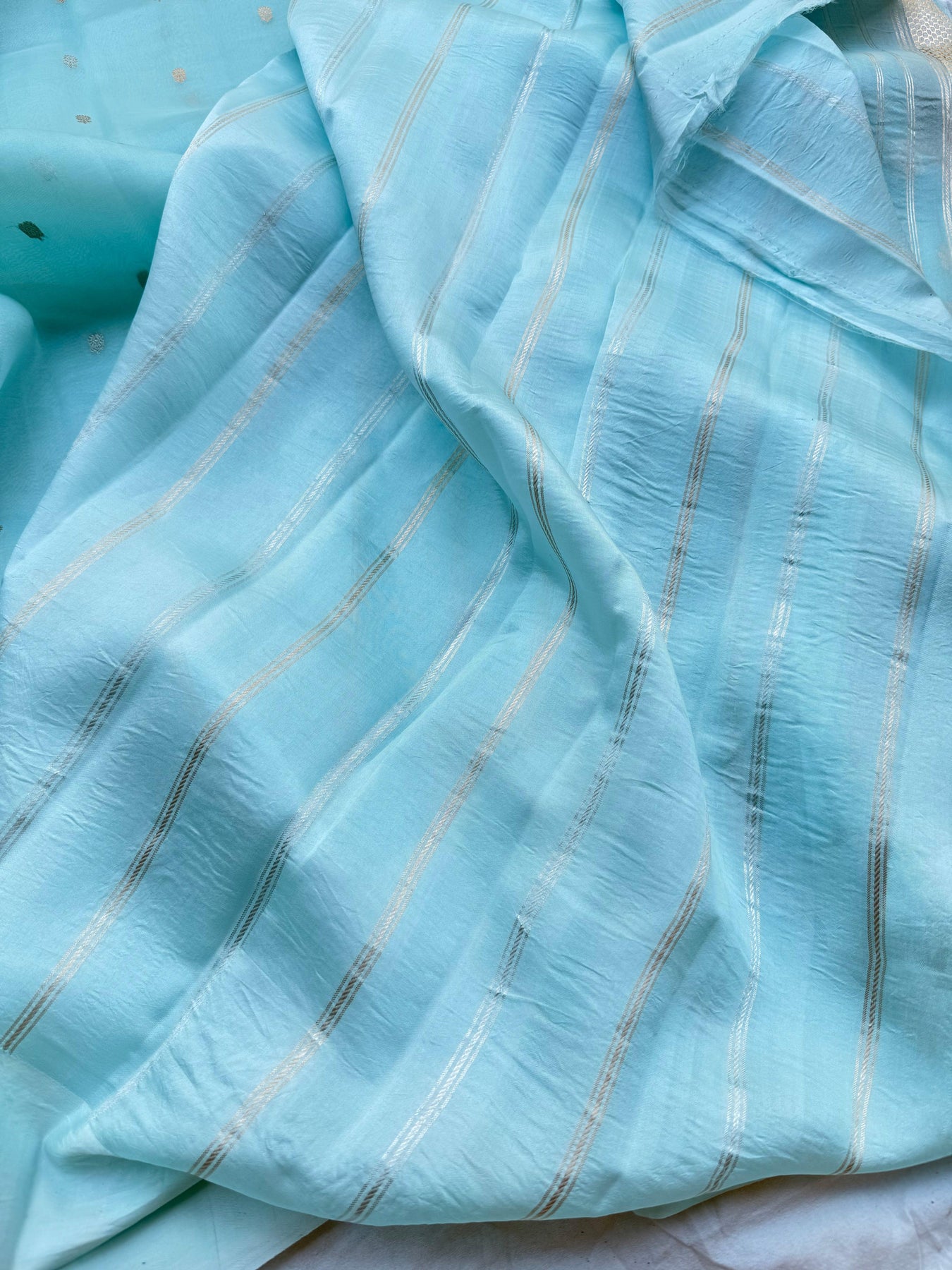 Pani Blue Pure Banarasi Handloom Kora Silk Saree with Kadhwa Buti & Mashru Border