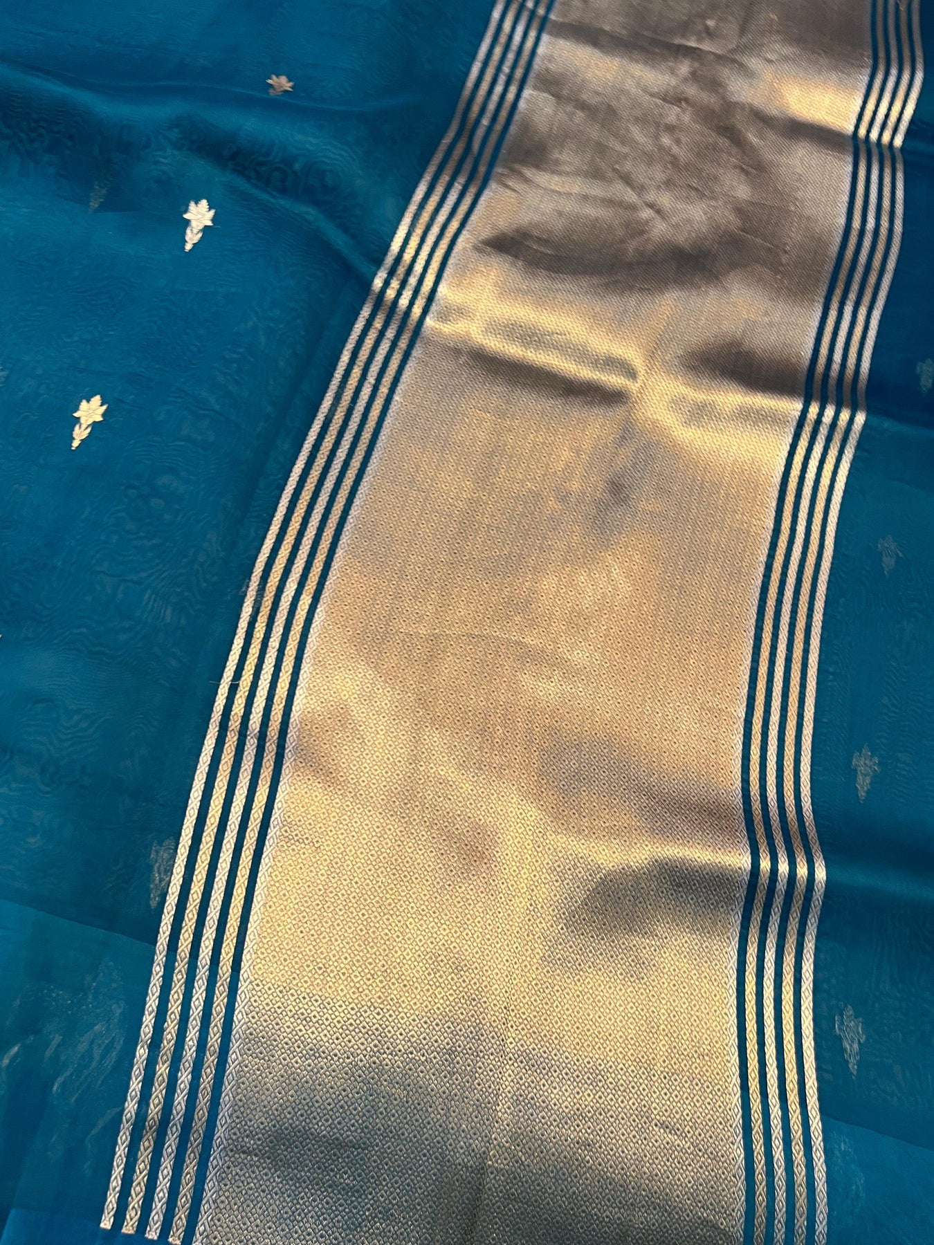 Rama Blue Pure Kora Silk Handloom Banarasi Saree
