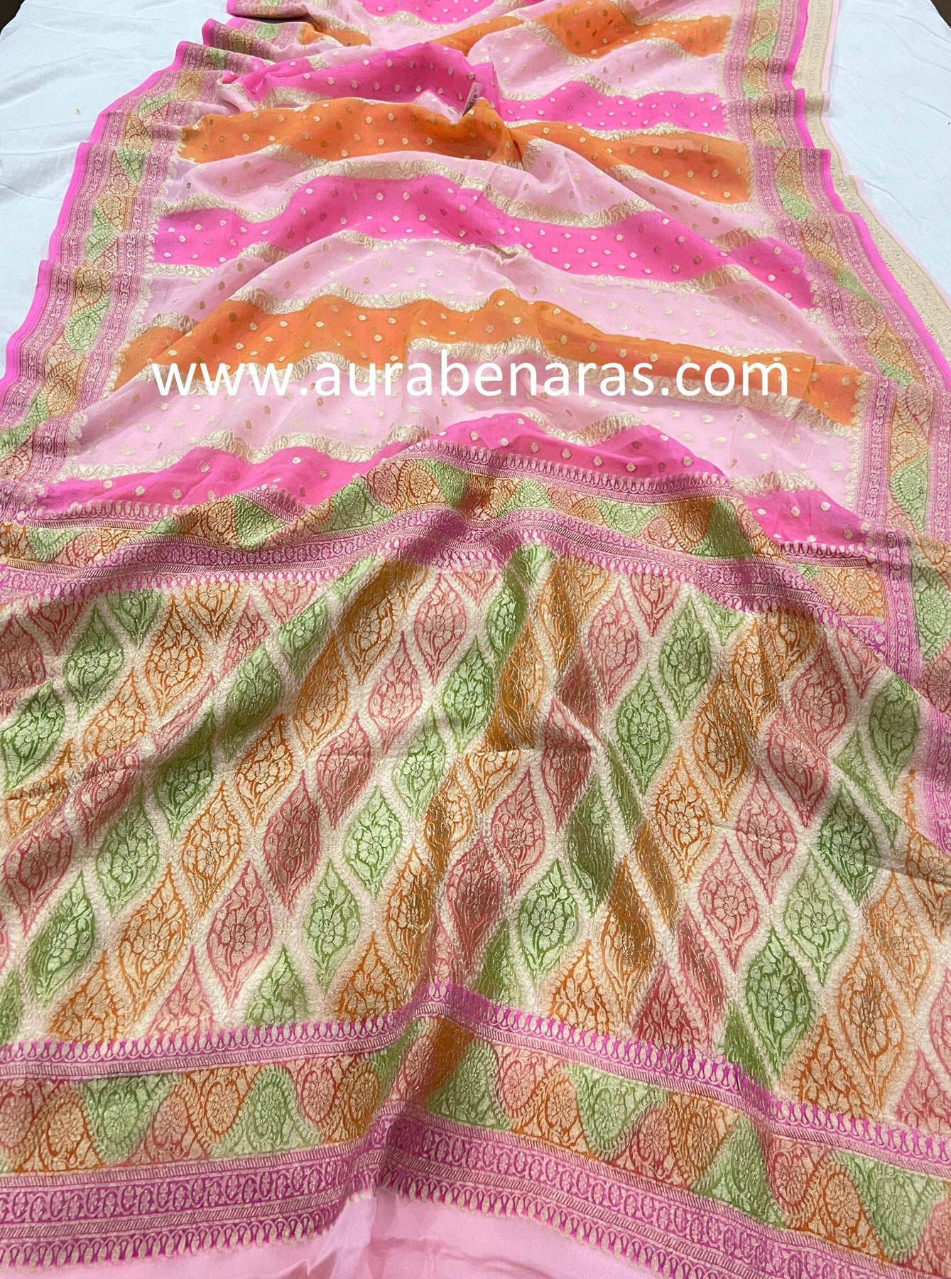 Baby Pink Rangkaat Banarasi Khaddi Georgette Saree - Aura Benaras