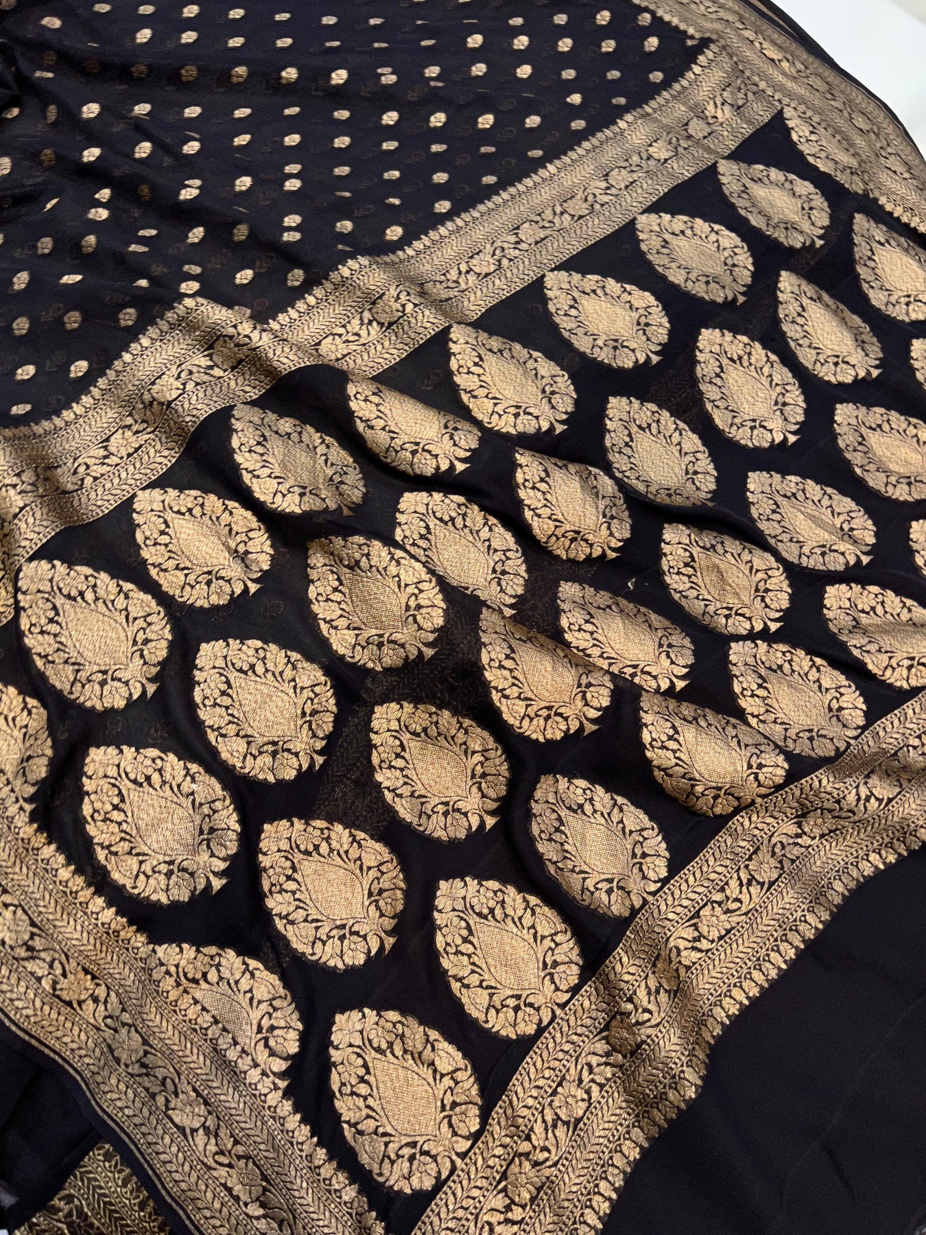 Black Banarasi Handloom Pure Khaddi Georgette Saree