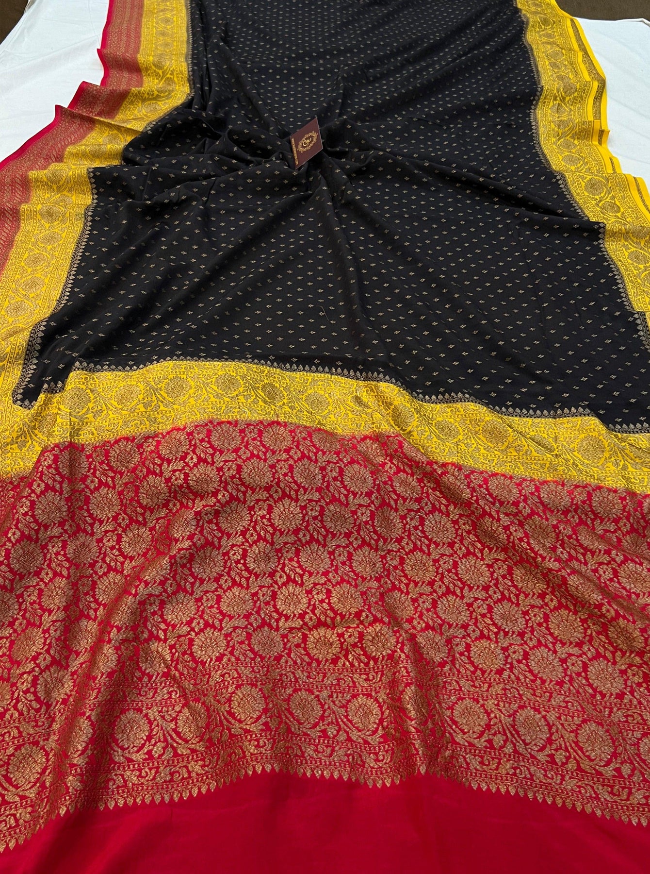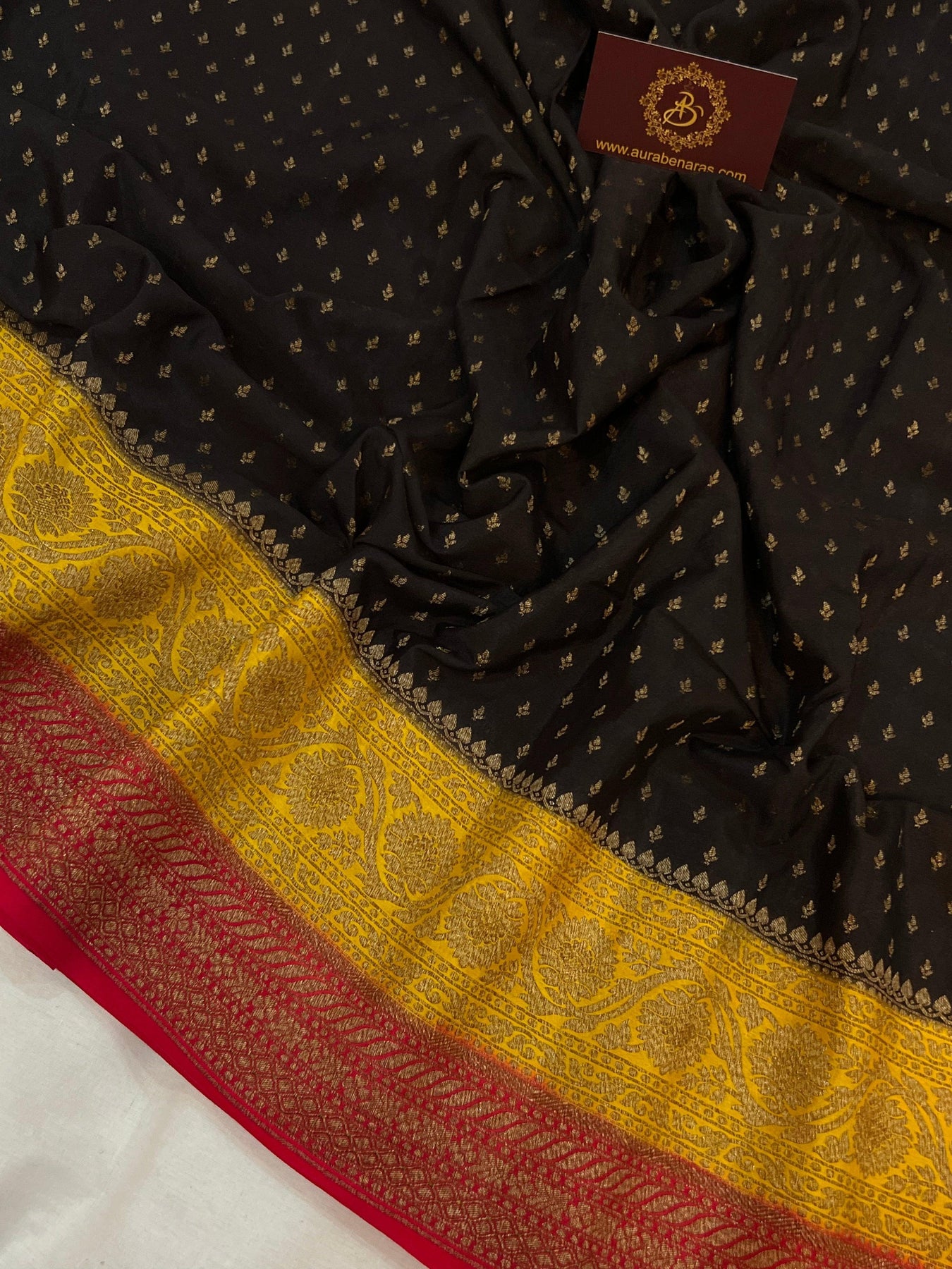 Black Pure Banarasi Khaddi Crepe Silk Saree