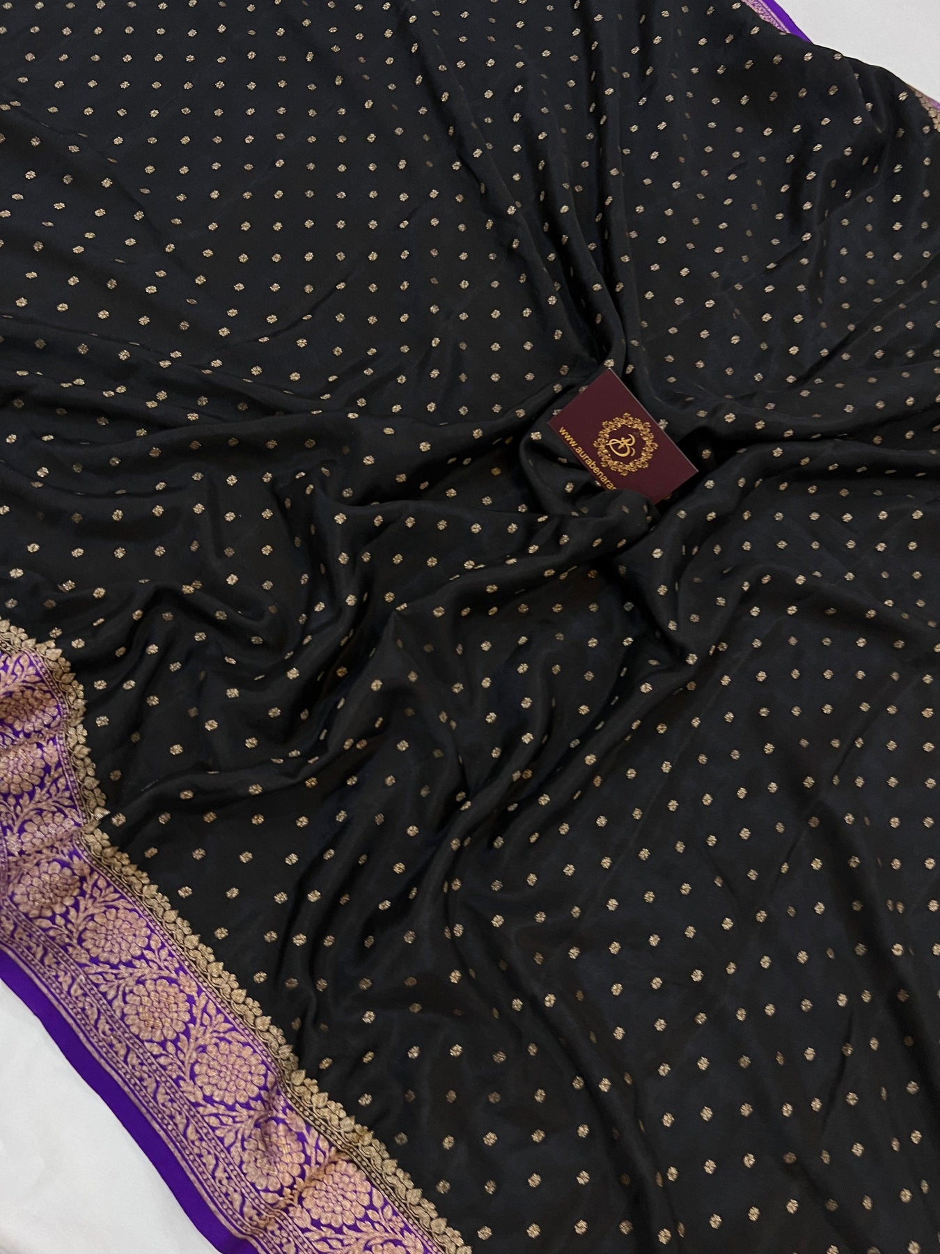 Black Pure Banarasi Khaddi Crepe Silk Saree