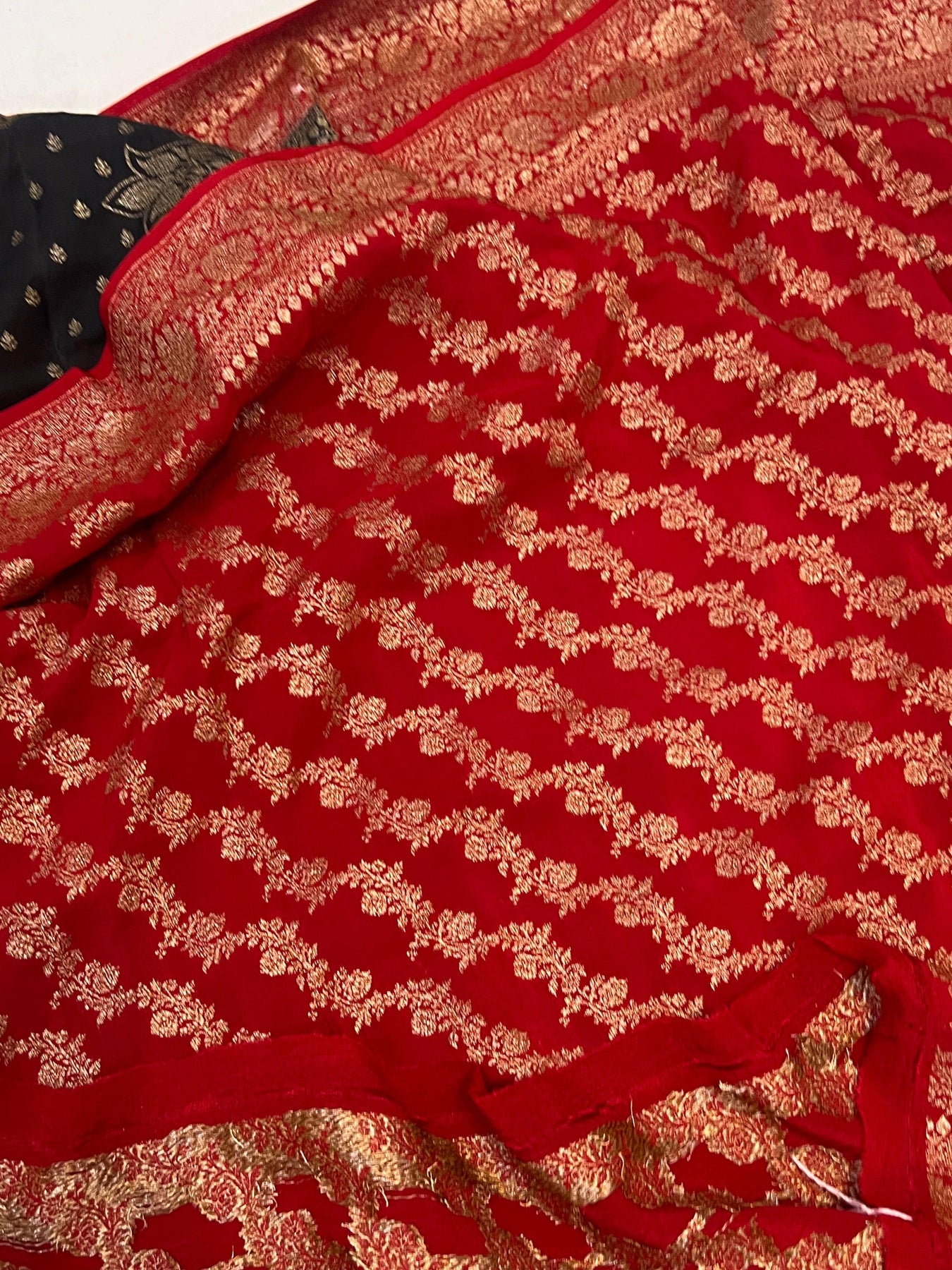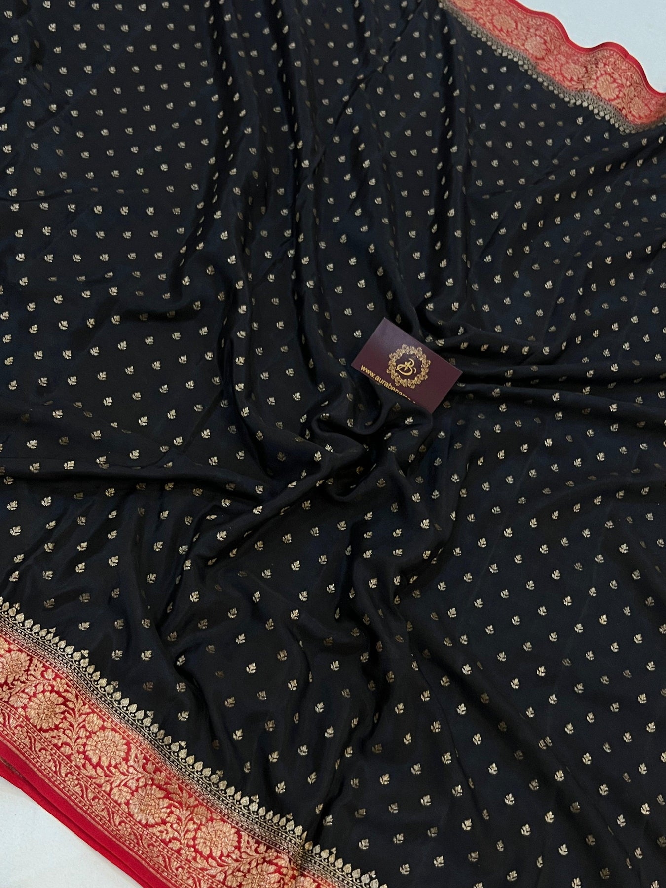 Black Pure Banarasi Khaddi Crepe Silk Saree