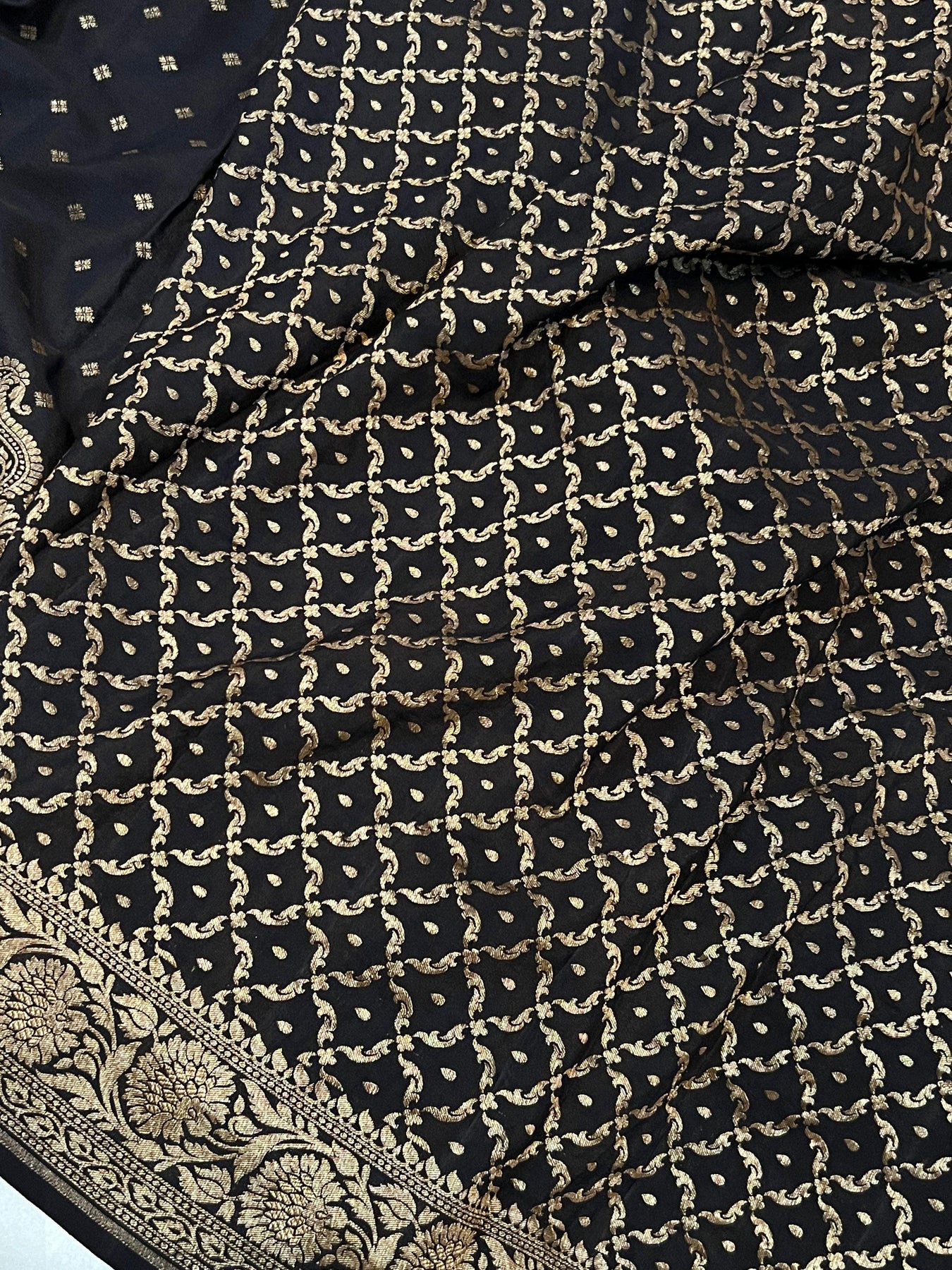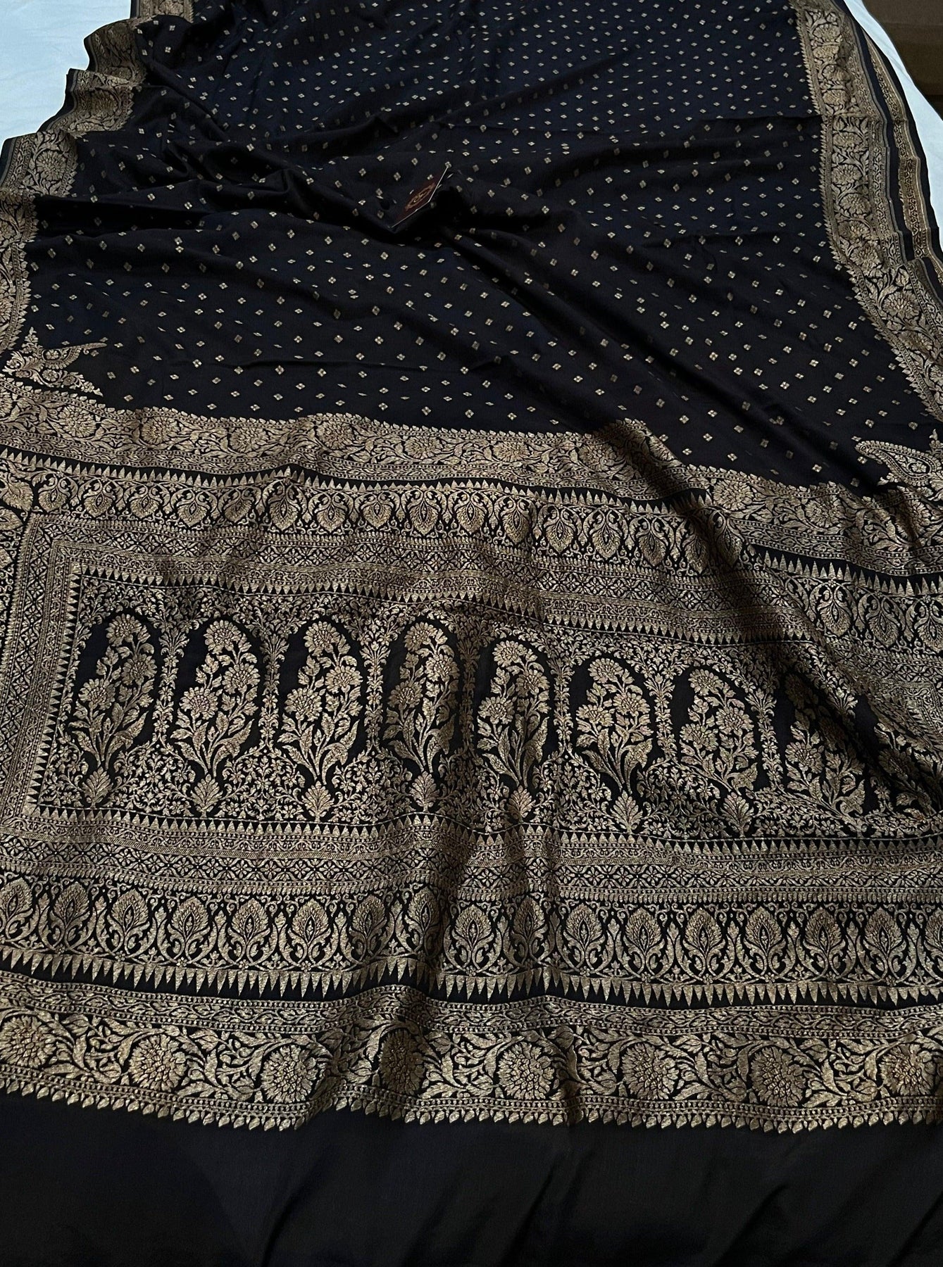 Black Pure Banarasi Khaddi Crepe Silk Saree