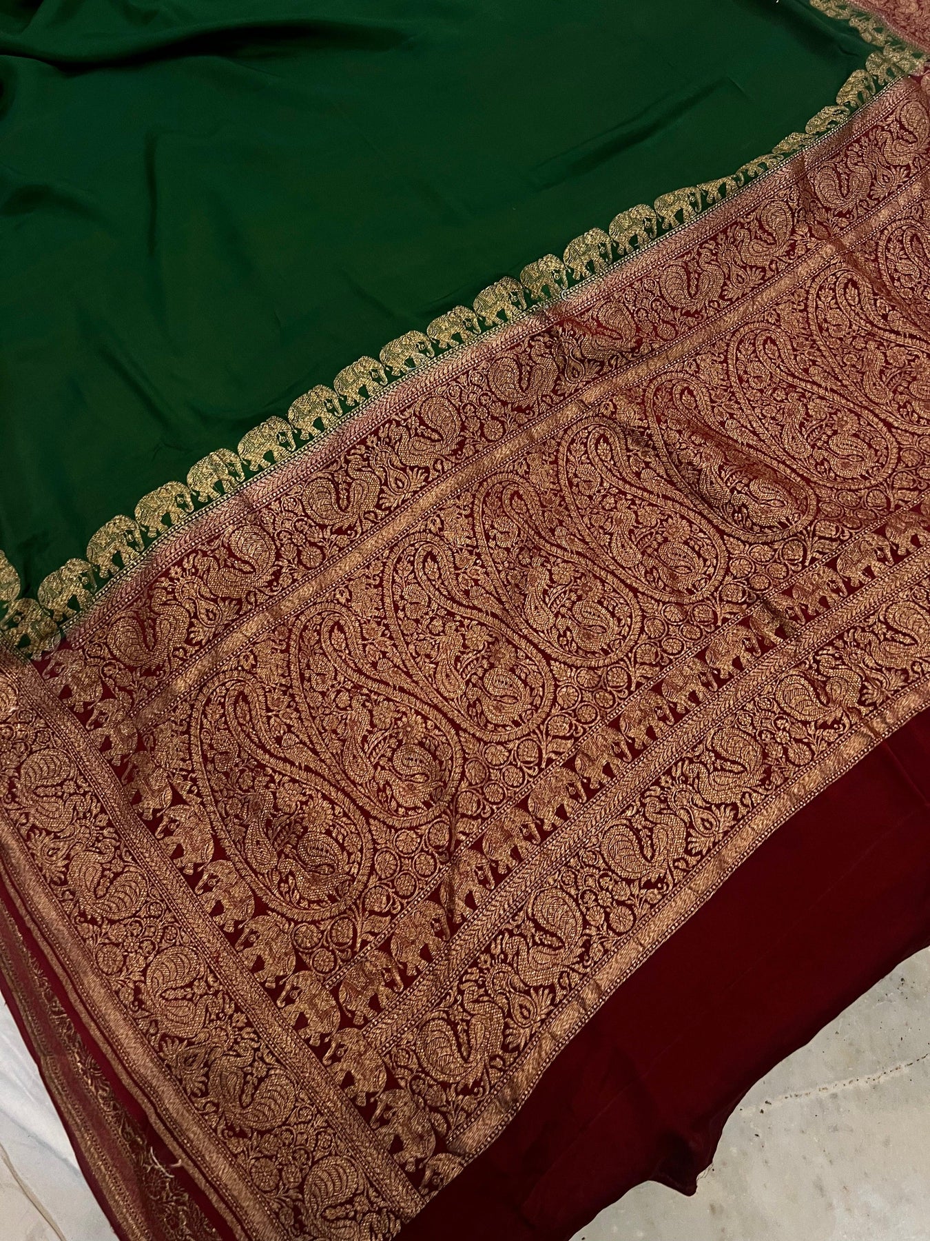 Bottle Green Pure Banarasi Khaddi Crepe Silk Saree