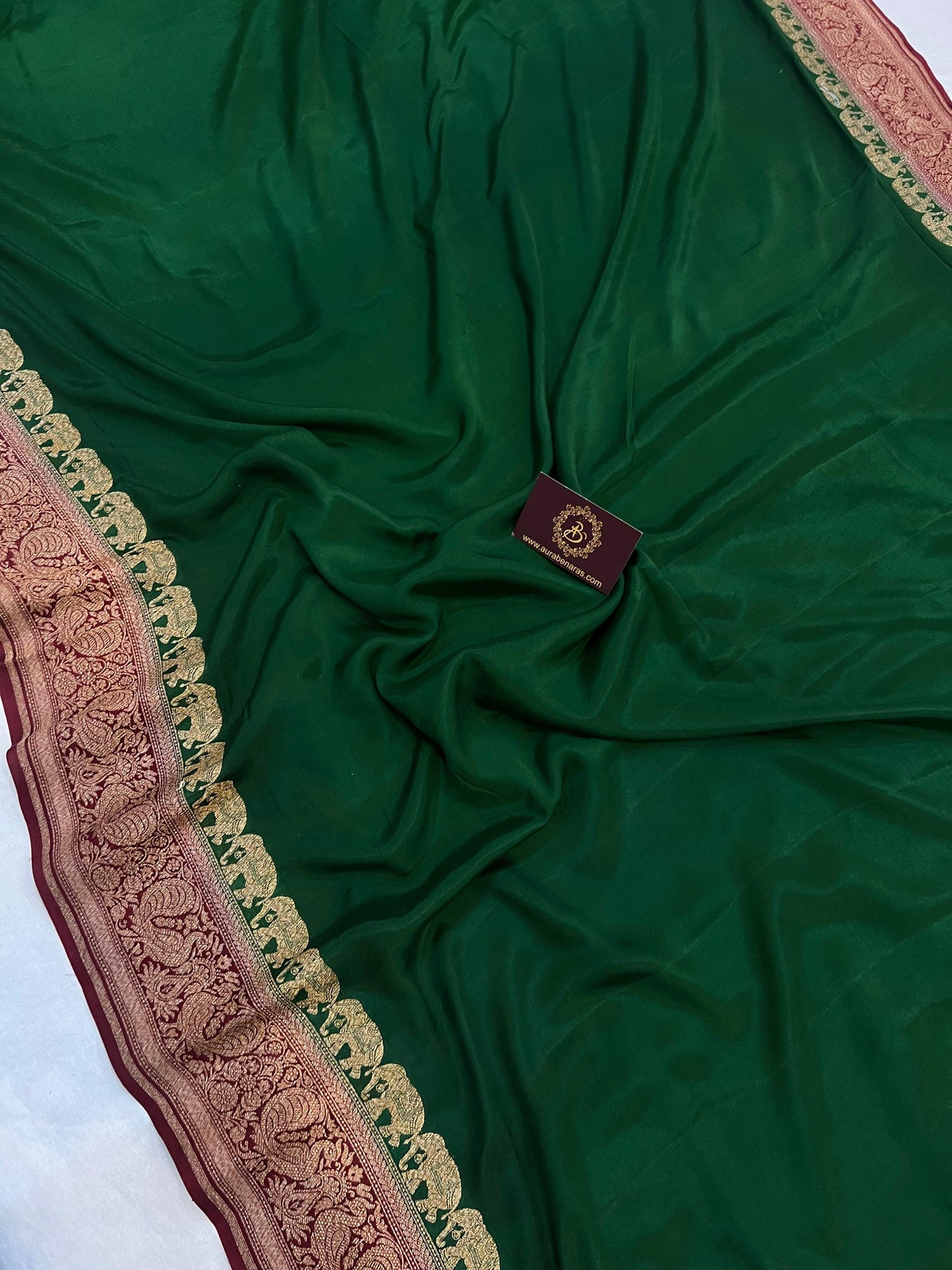 Bottle Green Pure Banarasi Khaddi Crepe Silk Saree - Aura Benaras