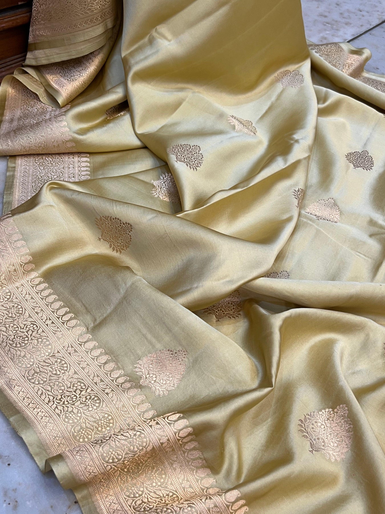 Cream Pure Mashru Silk Banarasi Handloom Saree with kadwa motifs