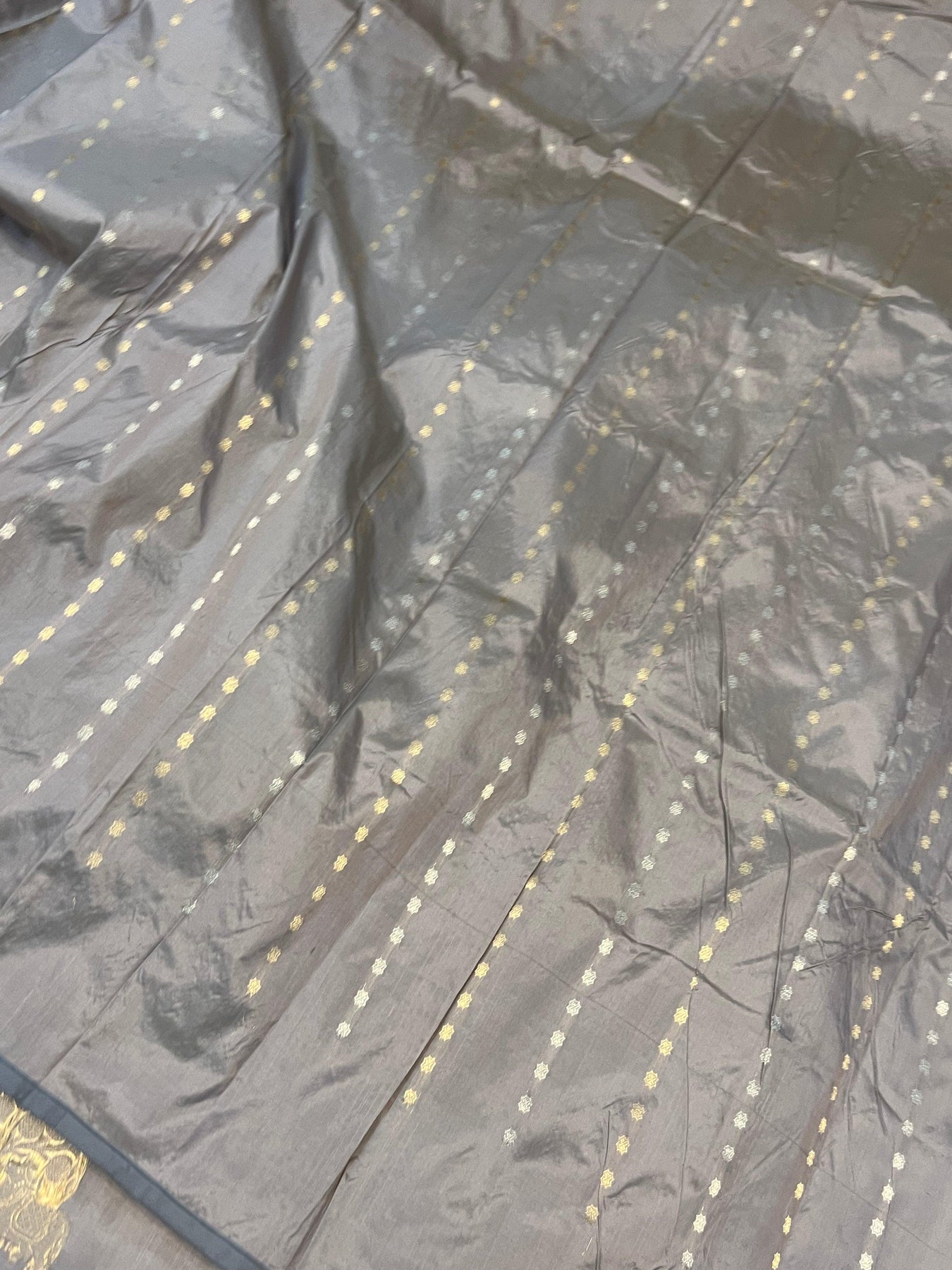Grey Banarasi Handloom Katan Silk Saree - Aura Benaras
