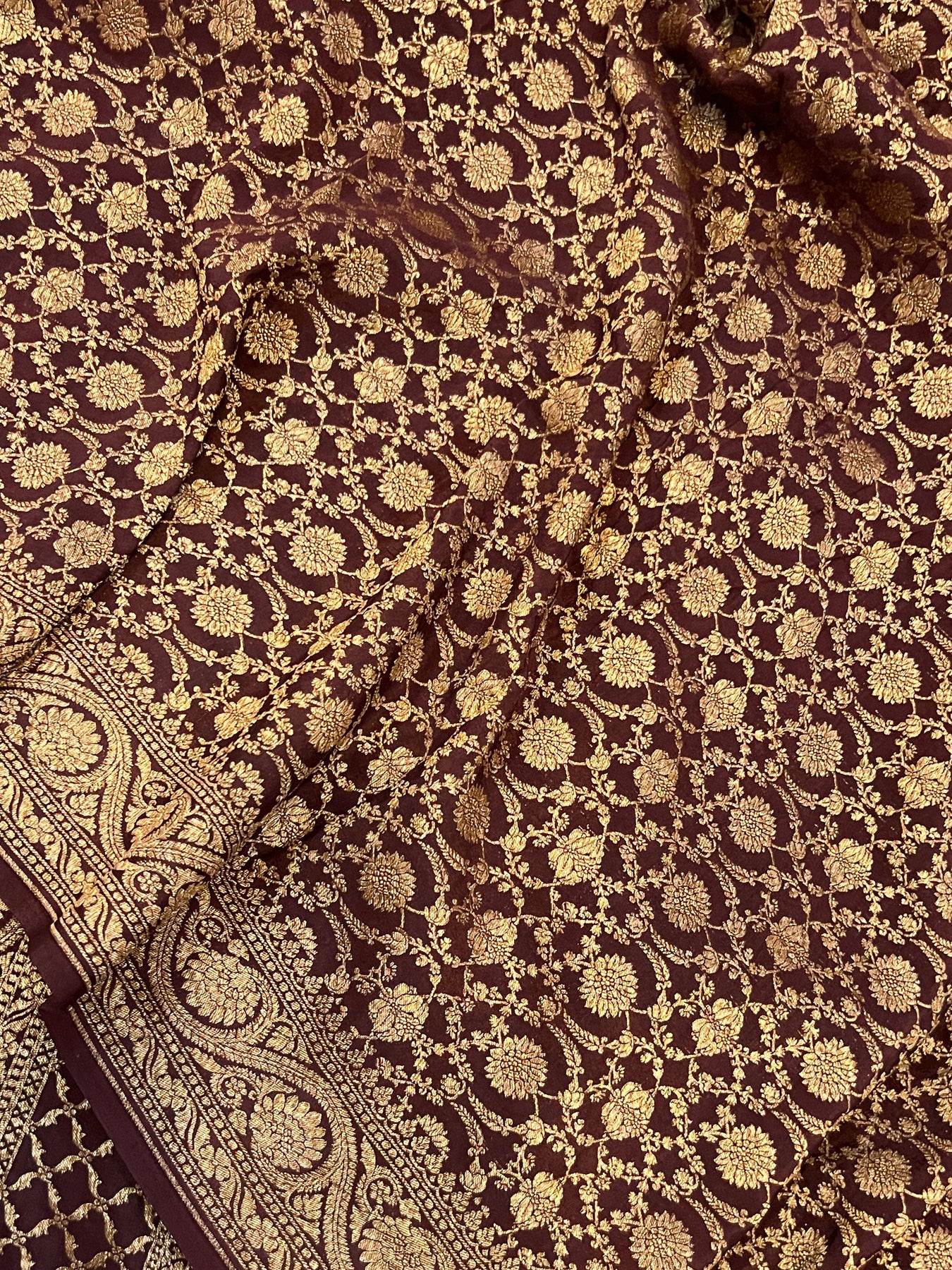 Grey Pure Banarasi Khaddi Crepe Silk Saree