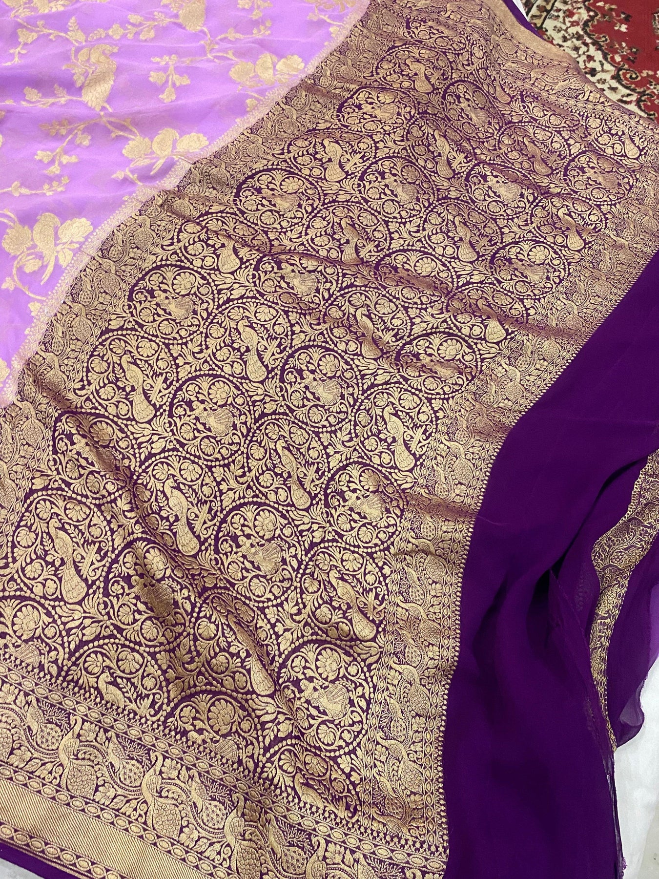 Lavender Banarasi Khaddi Georgette Saree - Aura Benaras