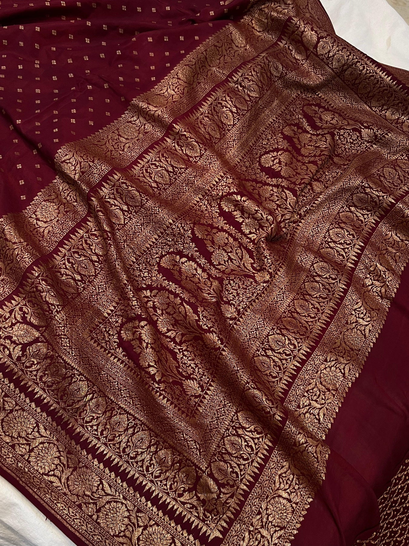 Maroon Pure Banarasi Khaddi Crepe Silk Saree