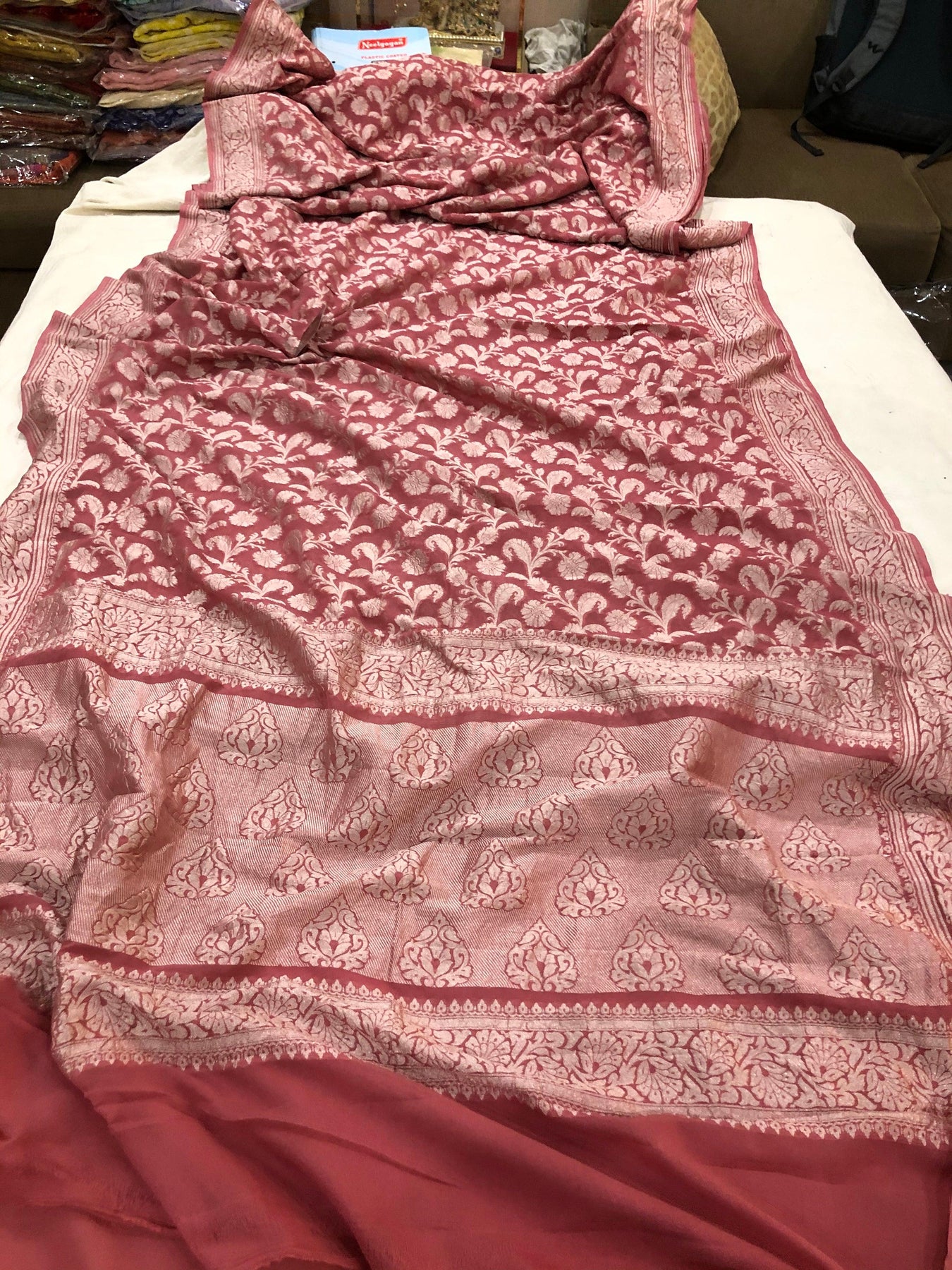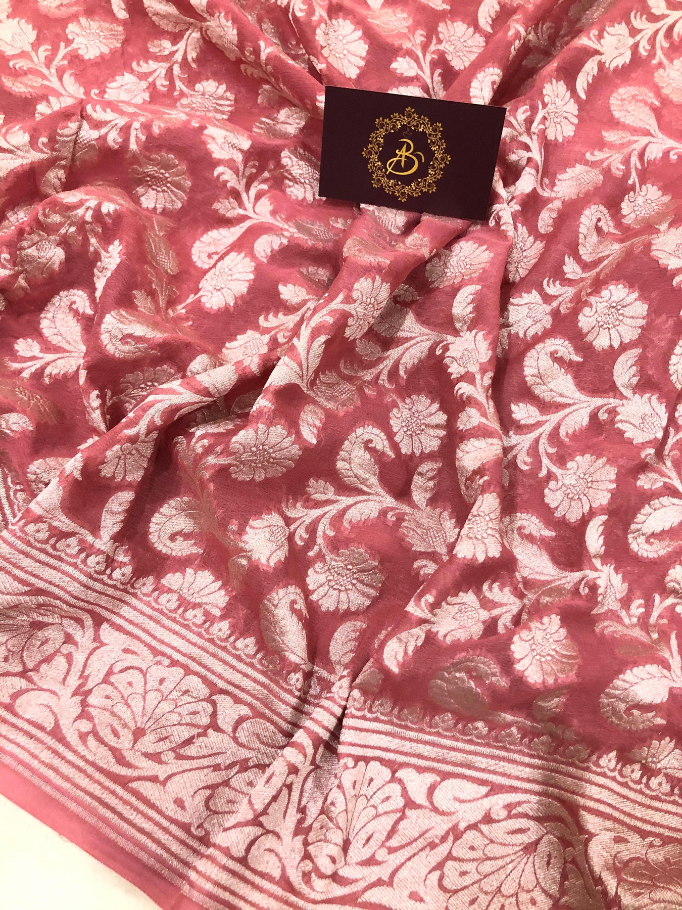 Onion shade Khaddi Georgette Silk Banarasi Handloom Saree