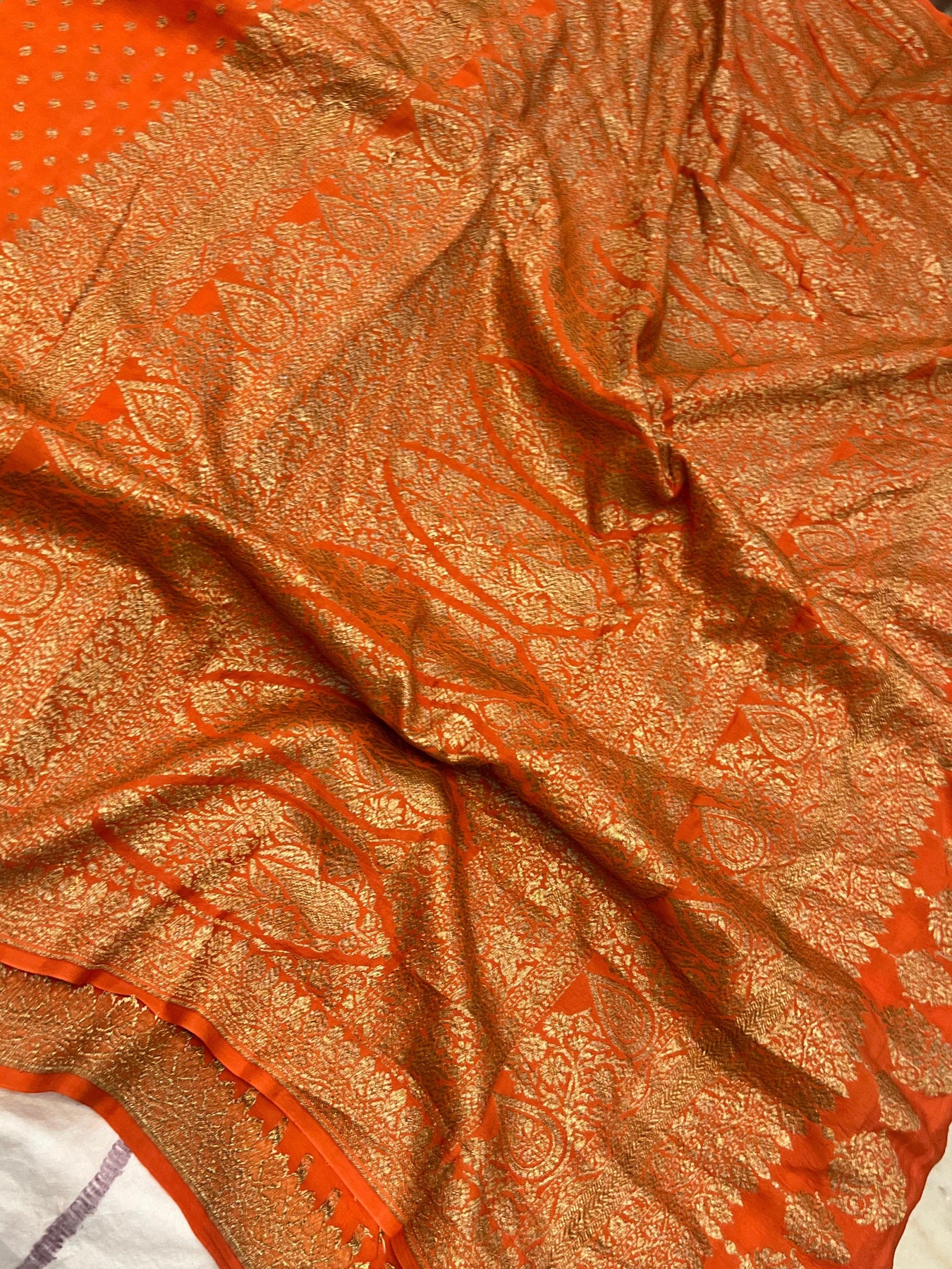 Orange Pure Banarasi Khaddi Crepe Silk Saree
