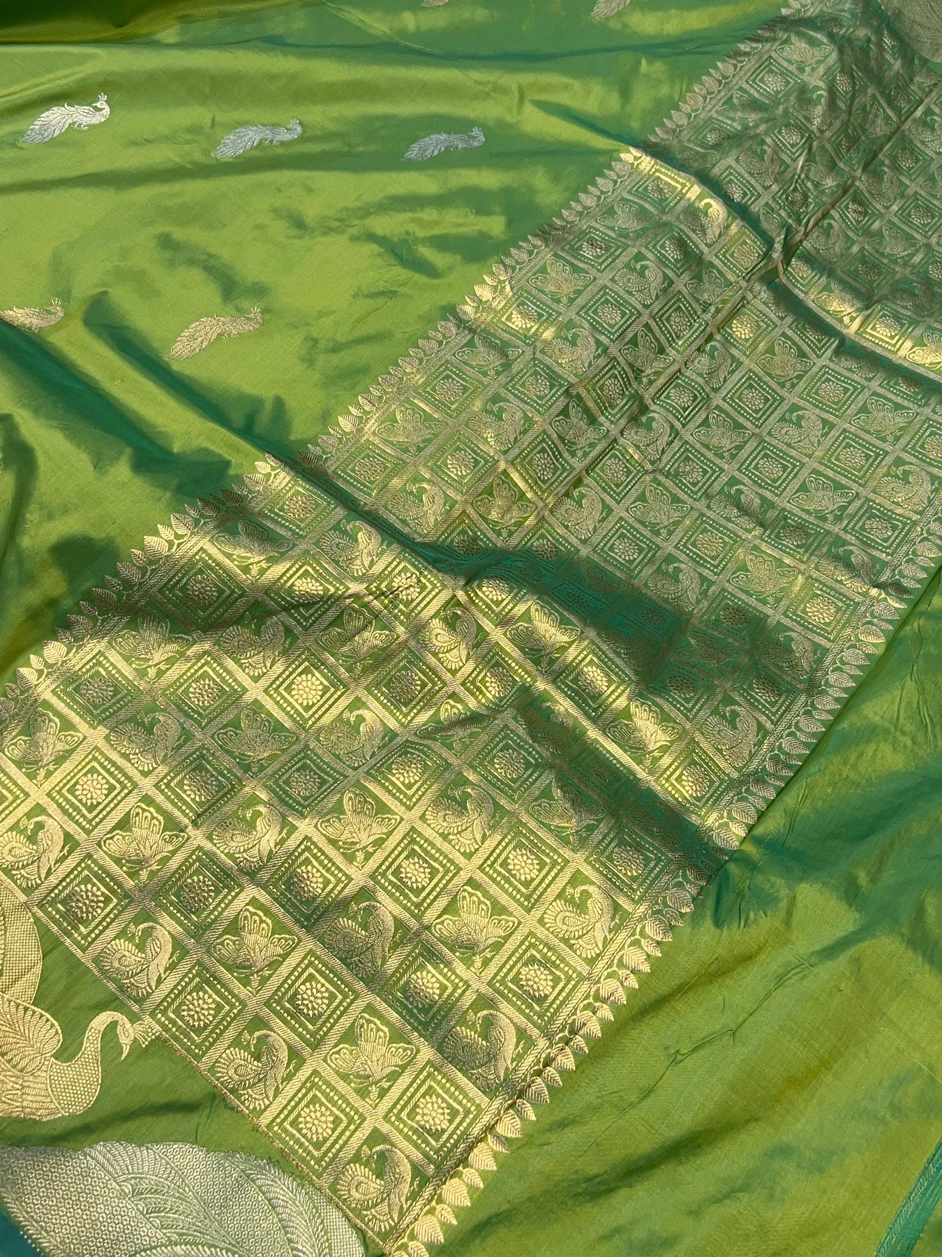 - Color - An enchanting Parrot Green with scintillating palla and border.