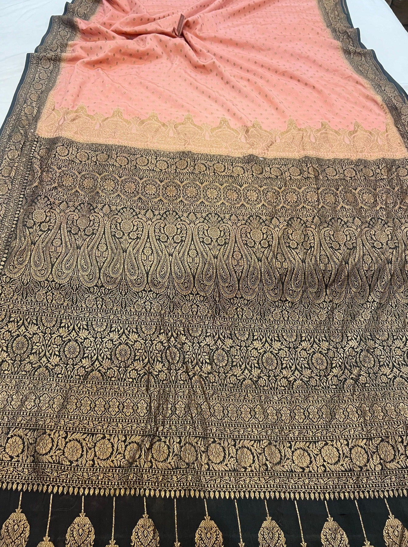 Peach Pure Banarasi Khaddi Crepe Silk Saree