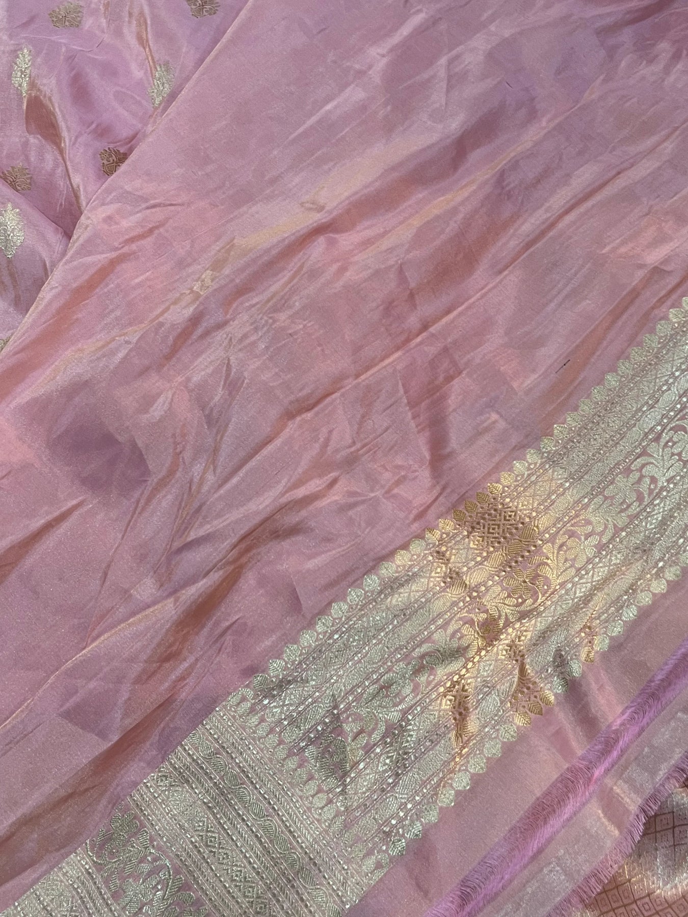 Peachish Pink Pure Katan Tissue Silk Handloom Banarasi Saree