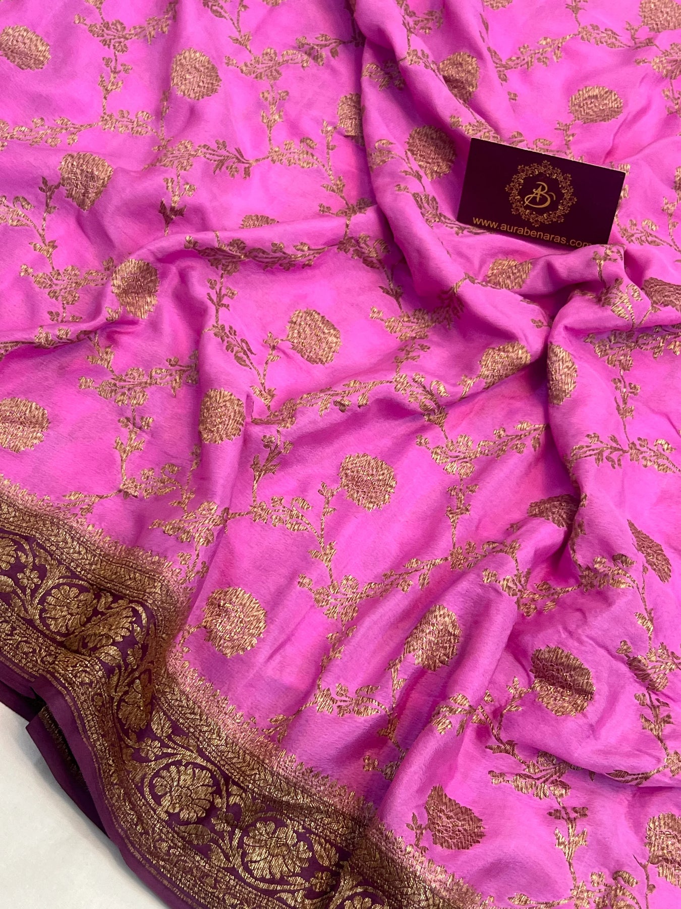 Pink Pure Crepe Silk Handloom Banarasi Saree with Floral Jaal