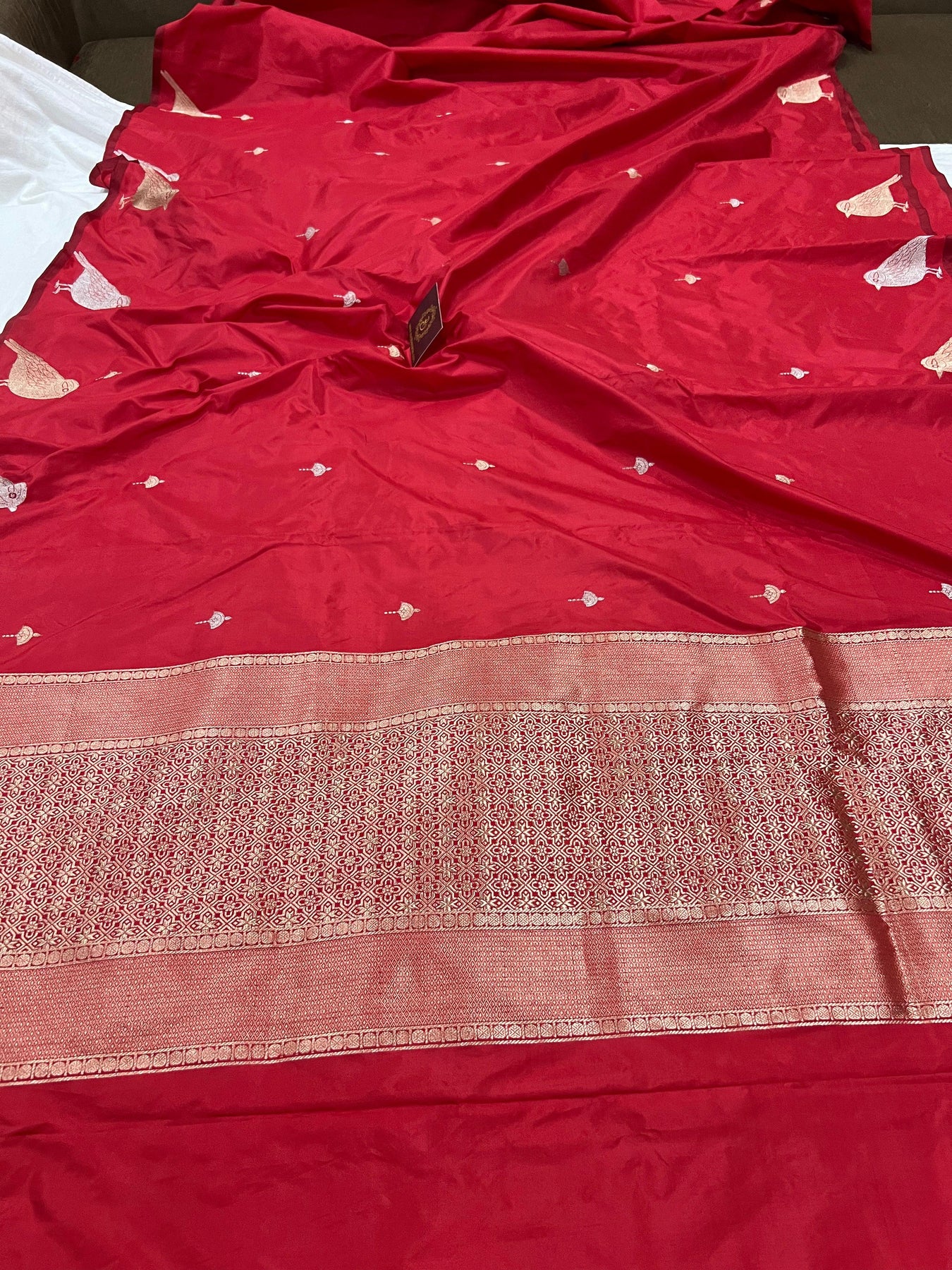 • Color - An enchanting Red with scintillating palla and border.