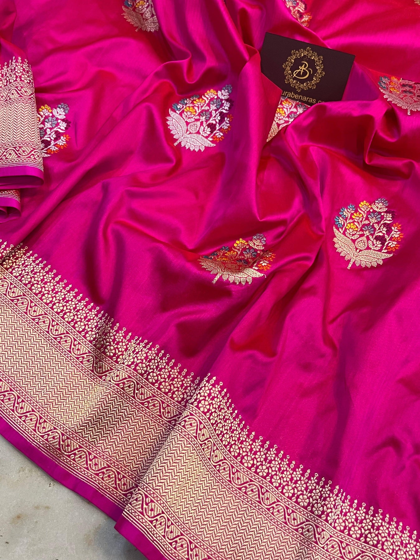 Rani Pink Banarasi Handloom Katan Silk Saree