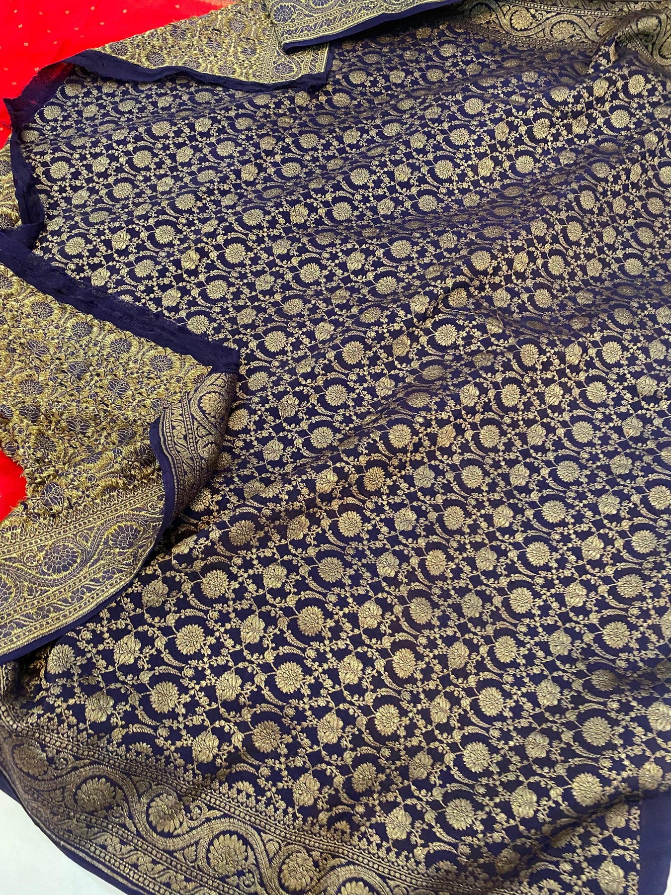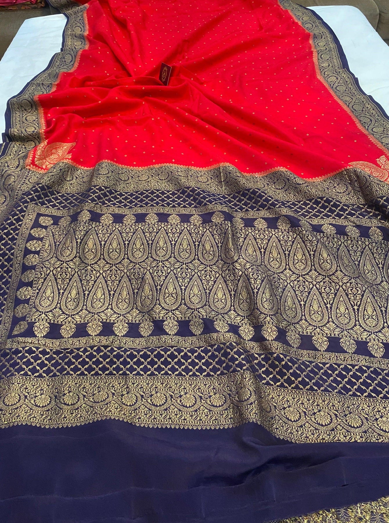 Red Pure Banarasi Khaddi Crepe Silk Saree