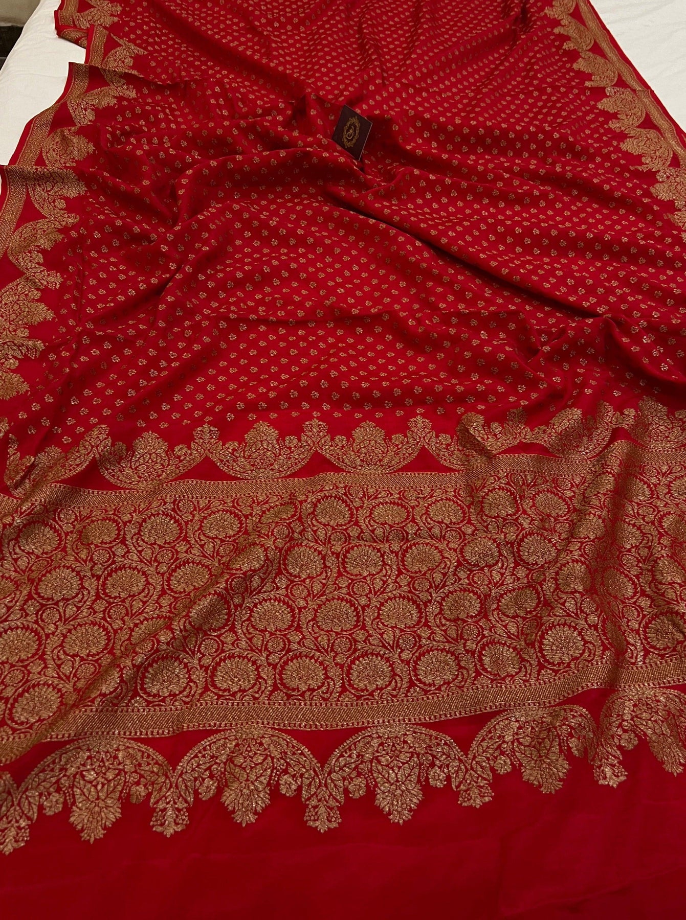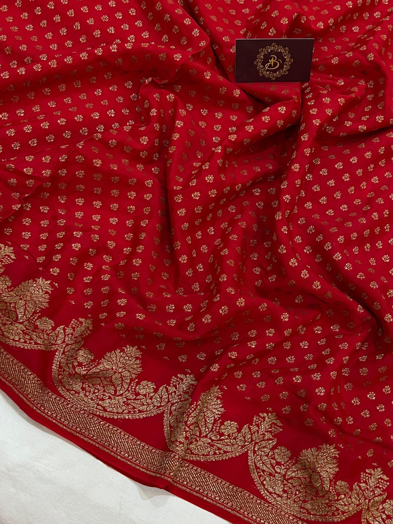 Red Pure Banarasi Khaddi Crepe Silk Saree