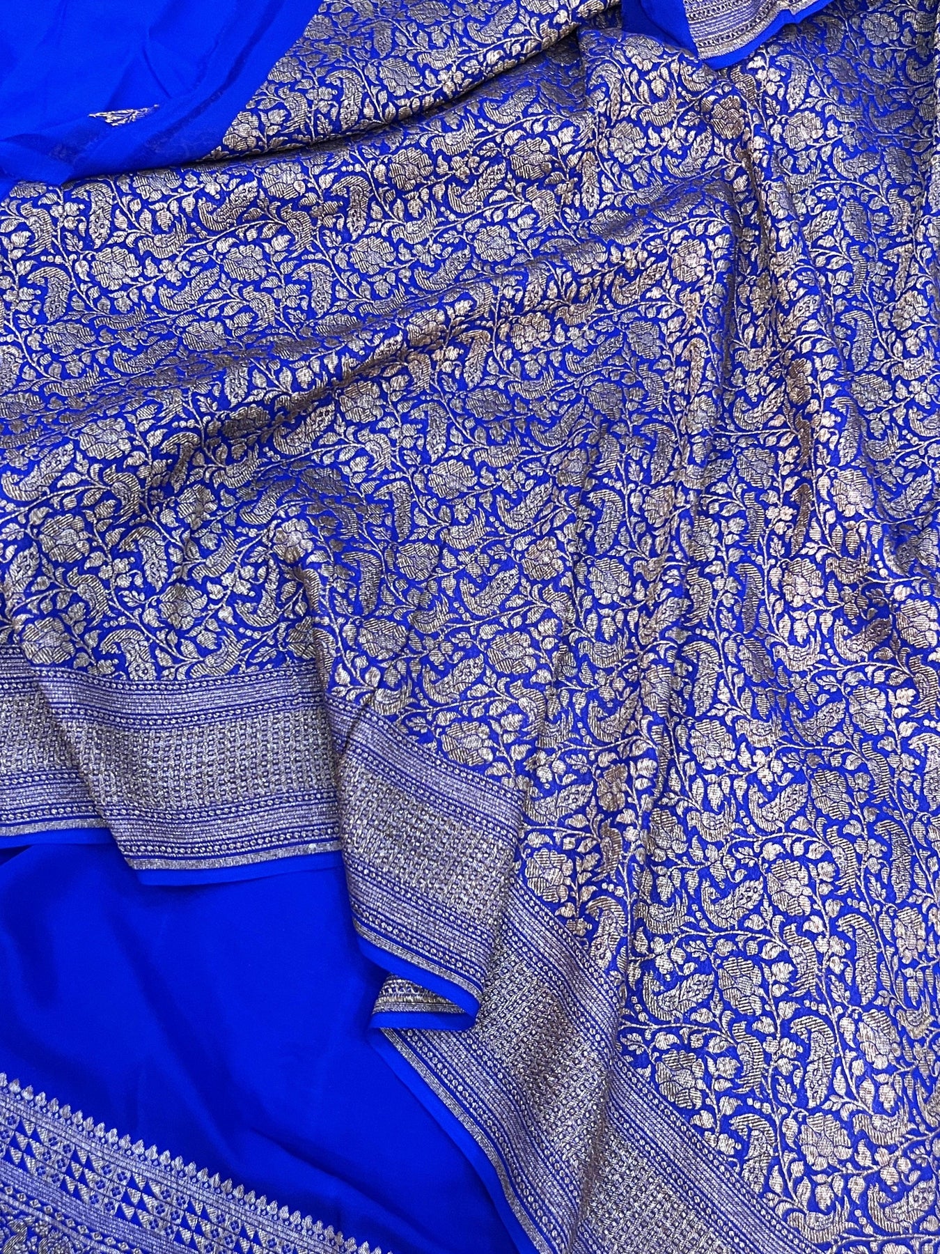 Royal Blue Pure Banarasi Khaddi Crepe Silk Saree